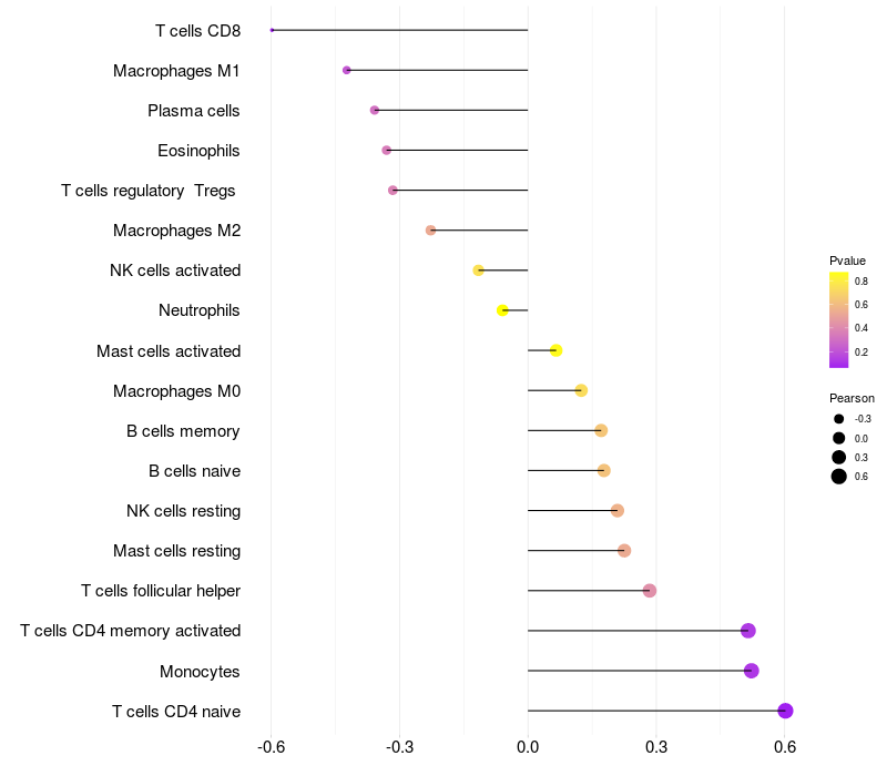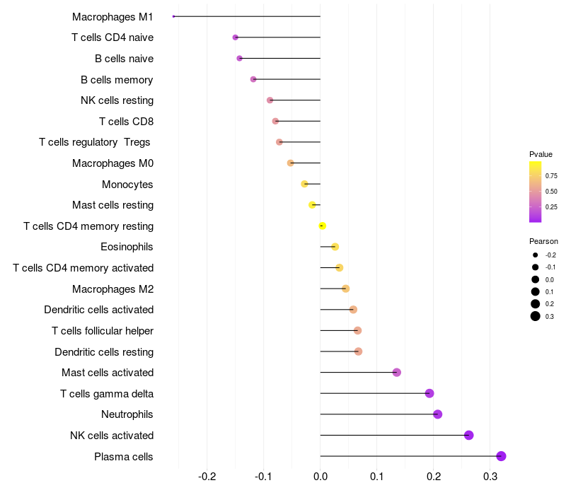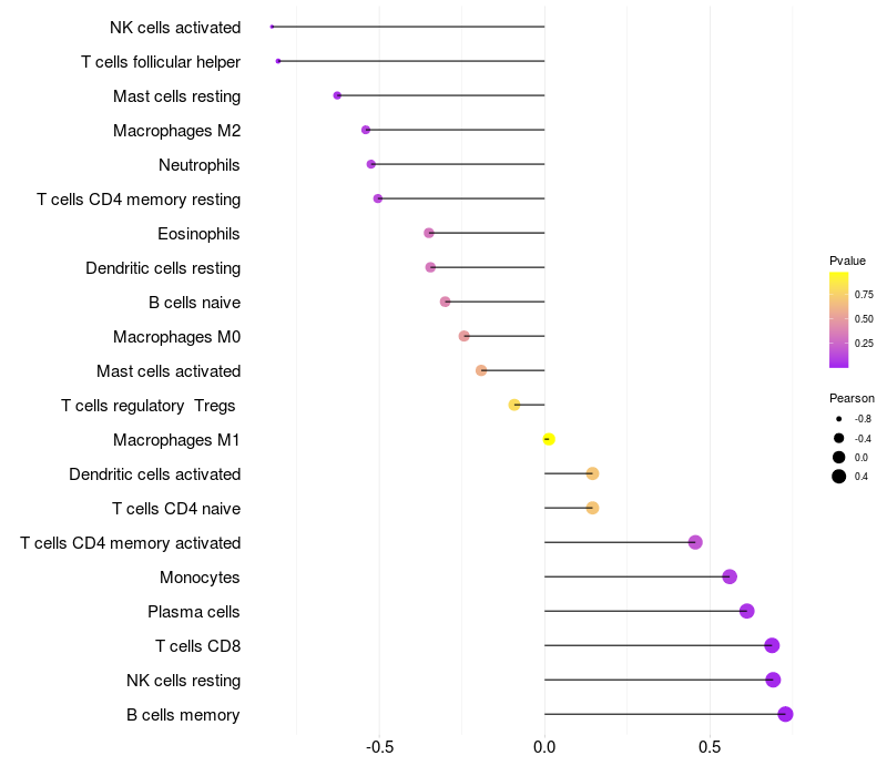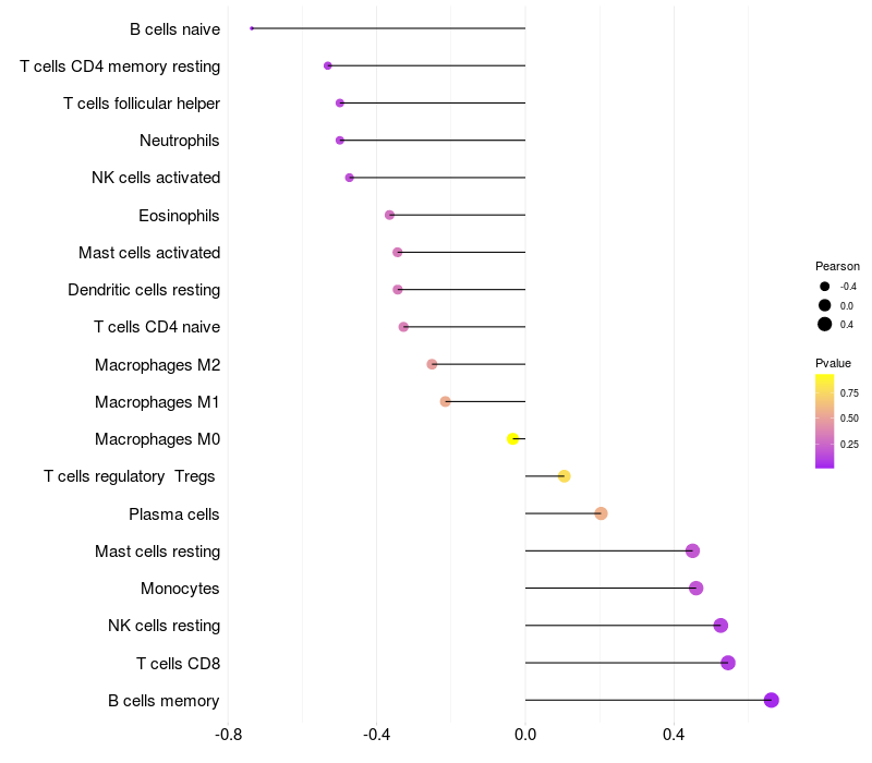 Lollipop of C9orf47 expression and immune infiltrating cell level correlation result in HBV+ Liver cirrhosis samples