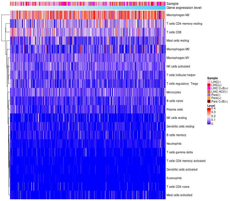 Liver hepatocellular carcinoma HCV (HBV+)(86), Liver hepatocellular carcinoma HCV (HBV-)(19), Liver hepatocellular carcinoma (HBV+)(209), Liver hepatocellular carcinoma (HBV+)(60), Paracancerous HCV (HBV+)(4), Paracancerous (HBV-)(28), Paracancerous (HBV+)(18) |