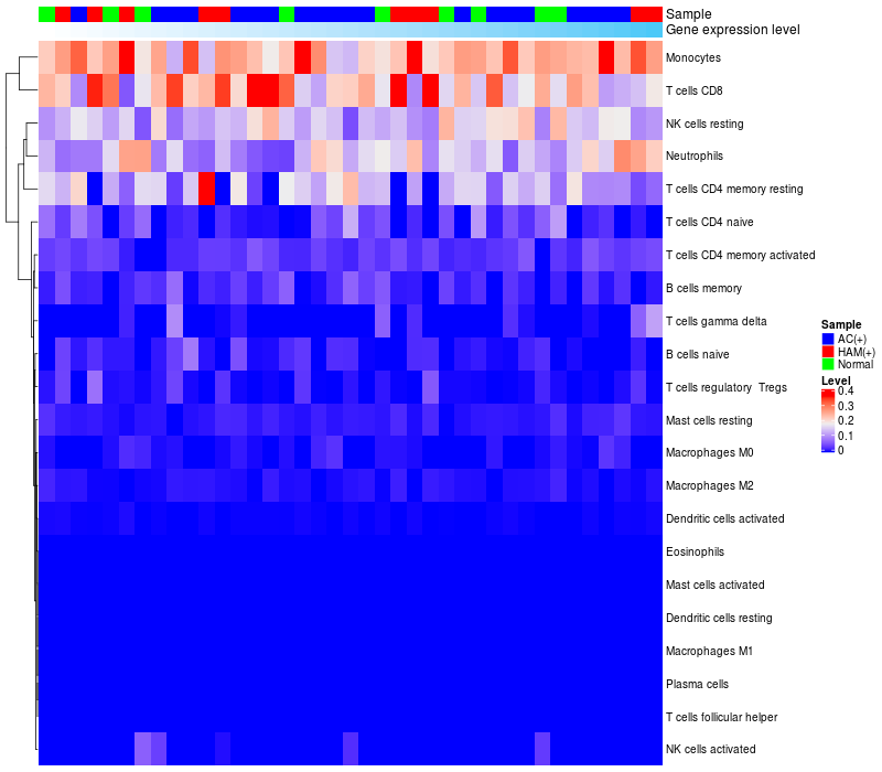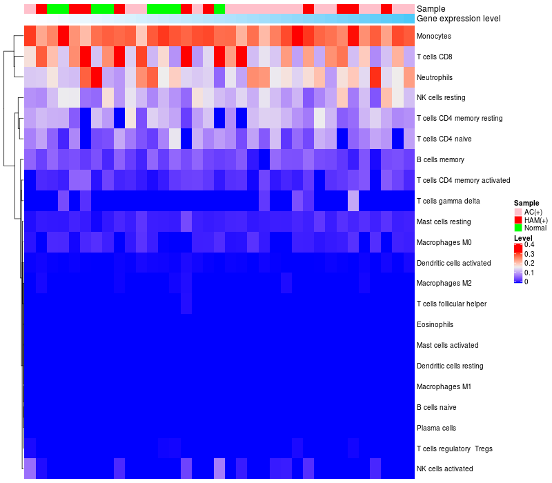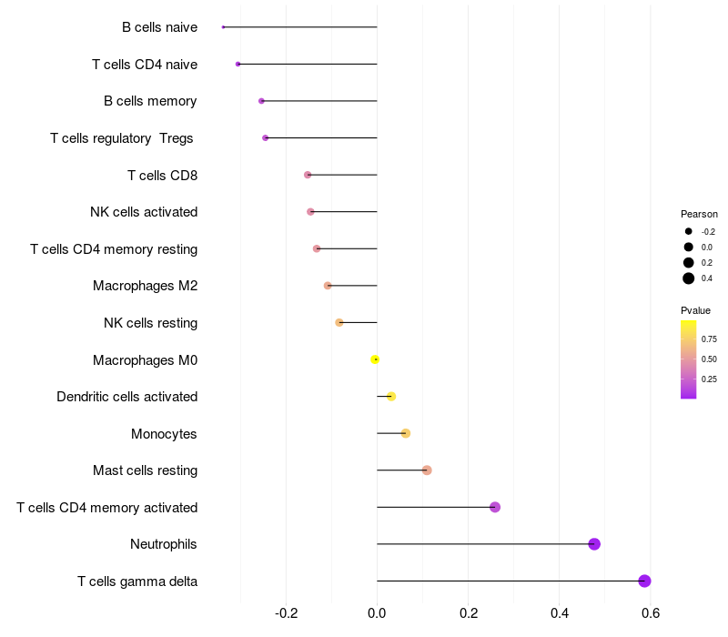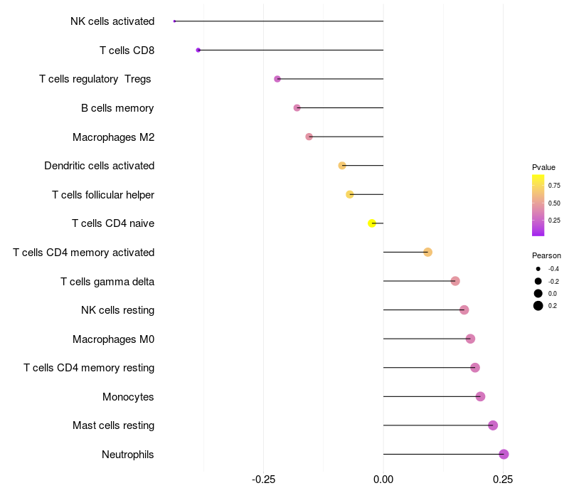Relationship between gene expression and immune infiltrating cell level