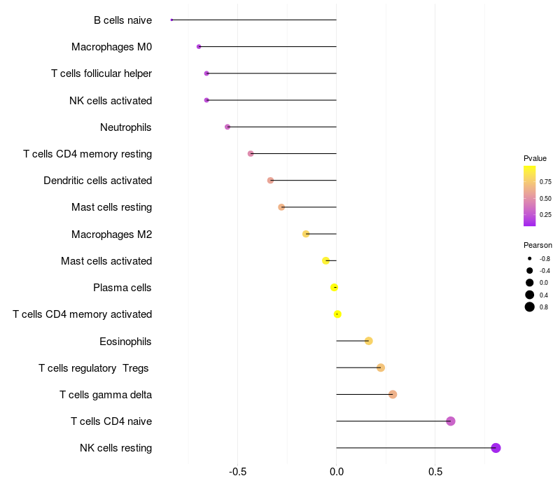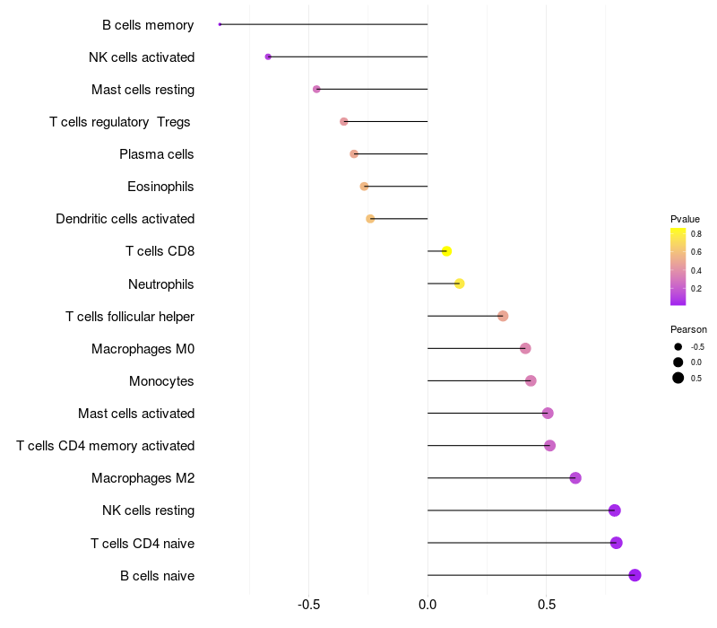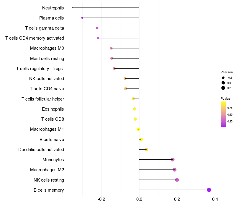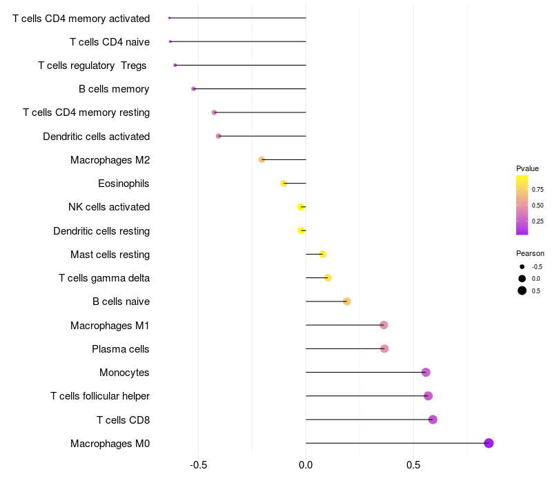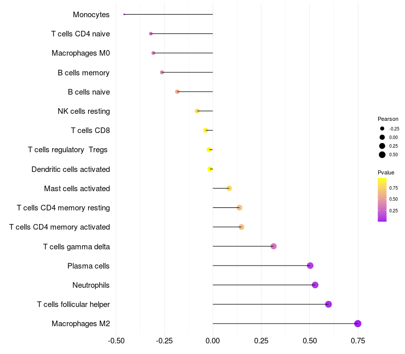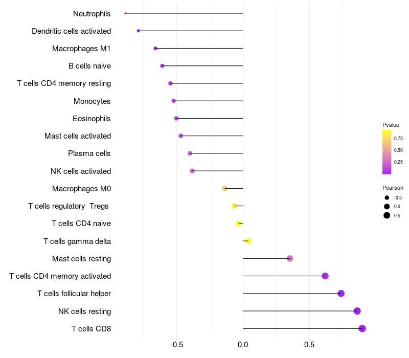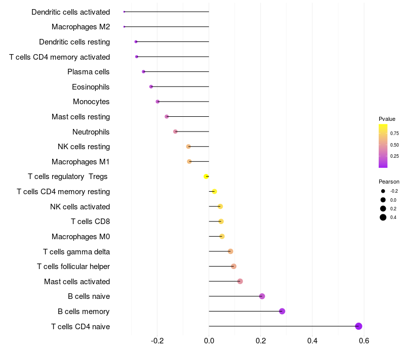 Lollipop of CABIN1 expression and immune infiltrating cell level correlation result in EBV+ samples
