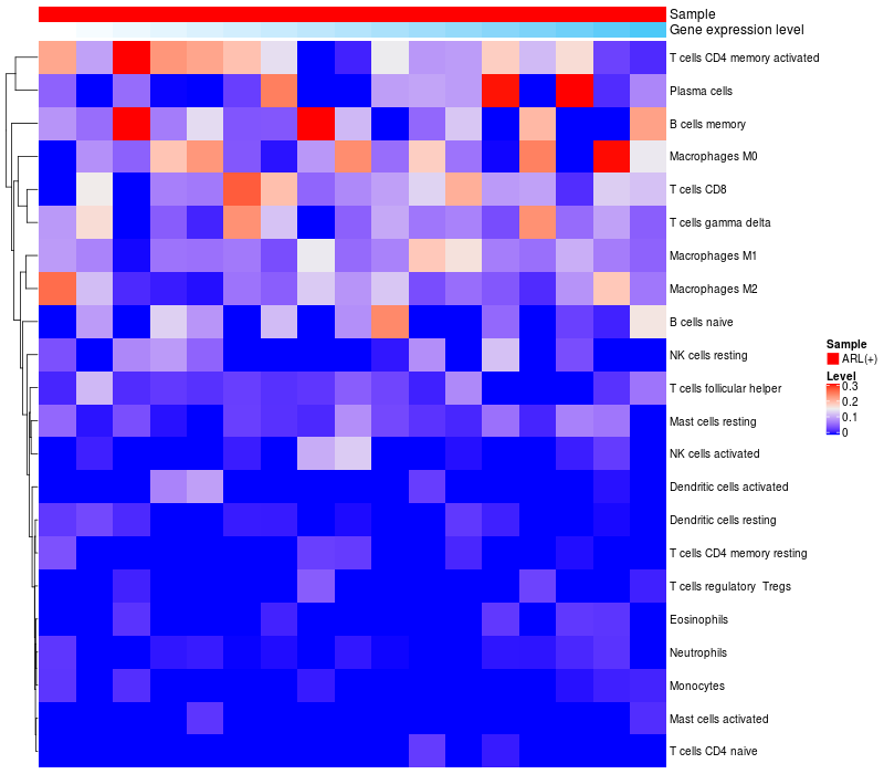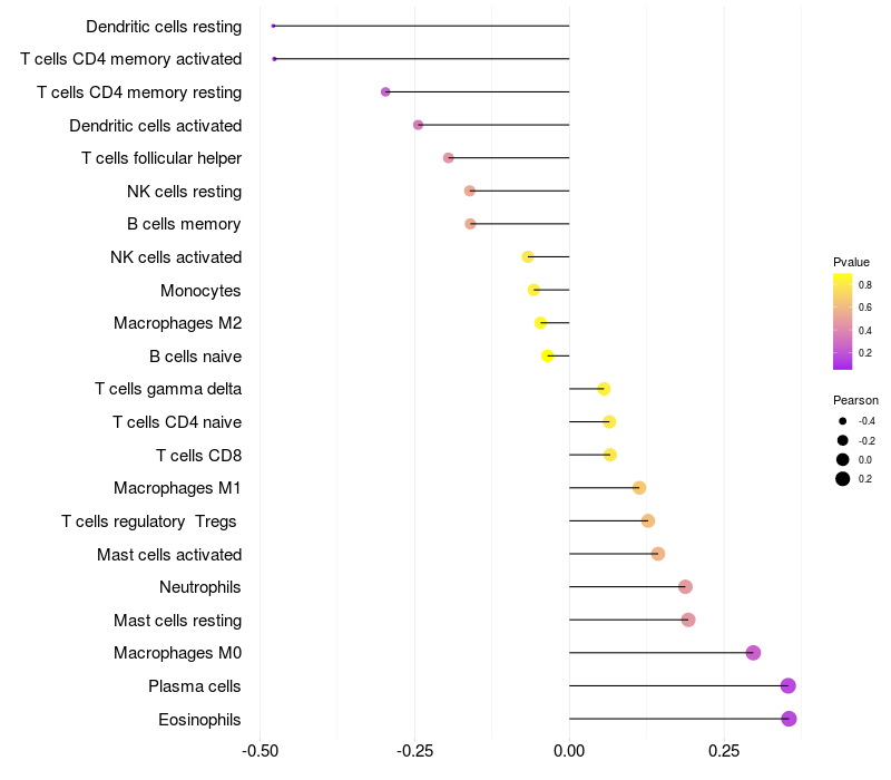 Relationship between gene expression and immune infiltrating cell level