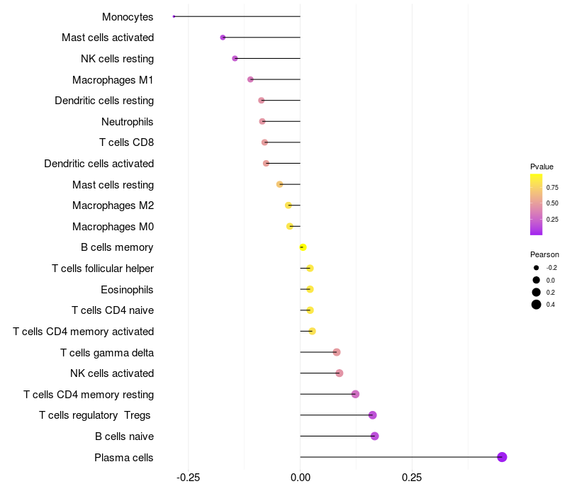 Lollipop of CACNA1C expression and immune infiltrating cell level correlation result in HBV+ samples