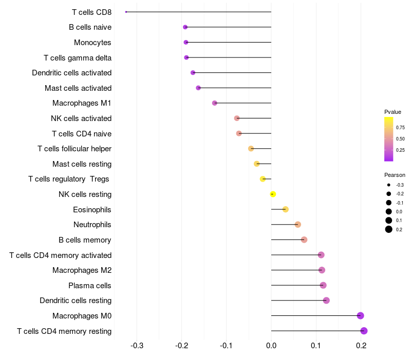 Lollipop of CACNA1D expression and immune infiltrating cell level correlation result in HBV+ samples