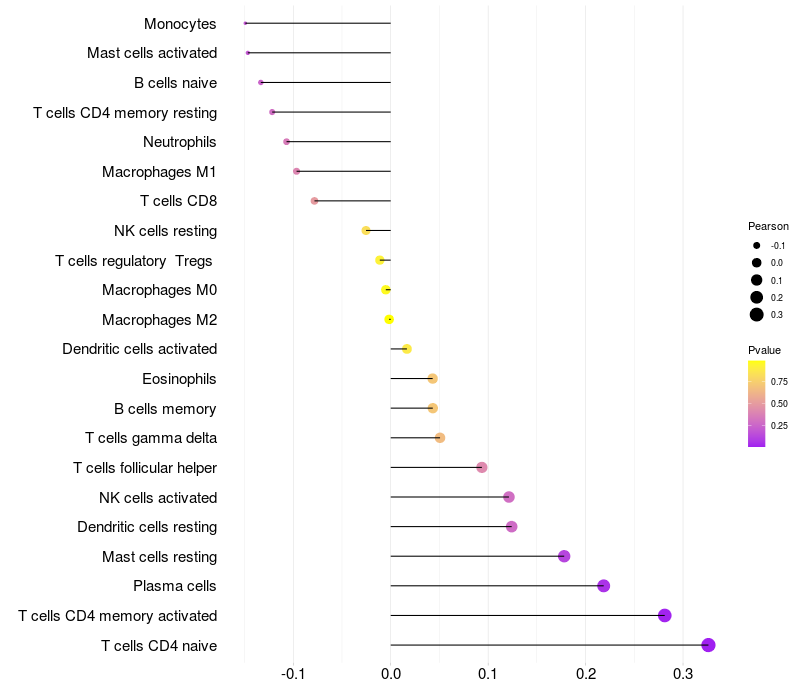 Lollipop of CACNA1S expression and immune infiltrating cell level correlation result in HBV+ samples