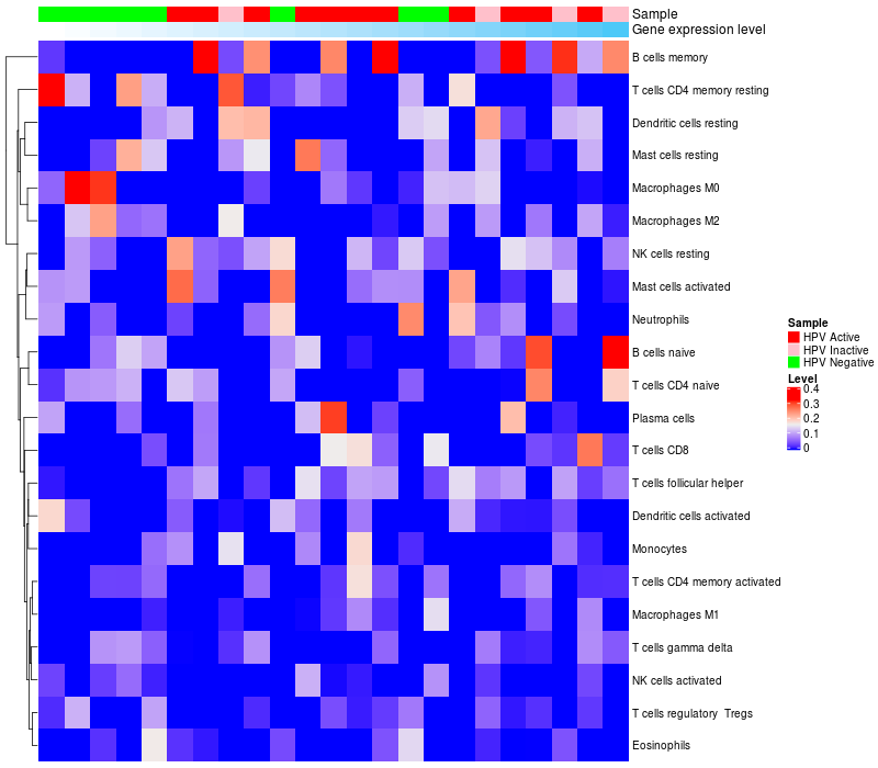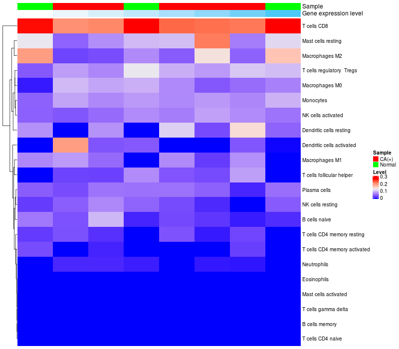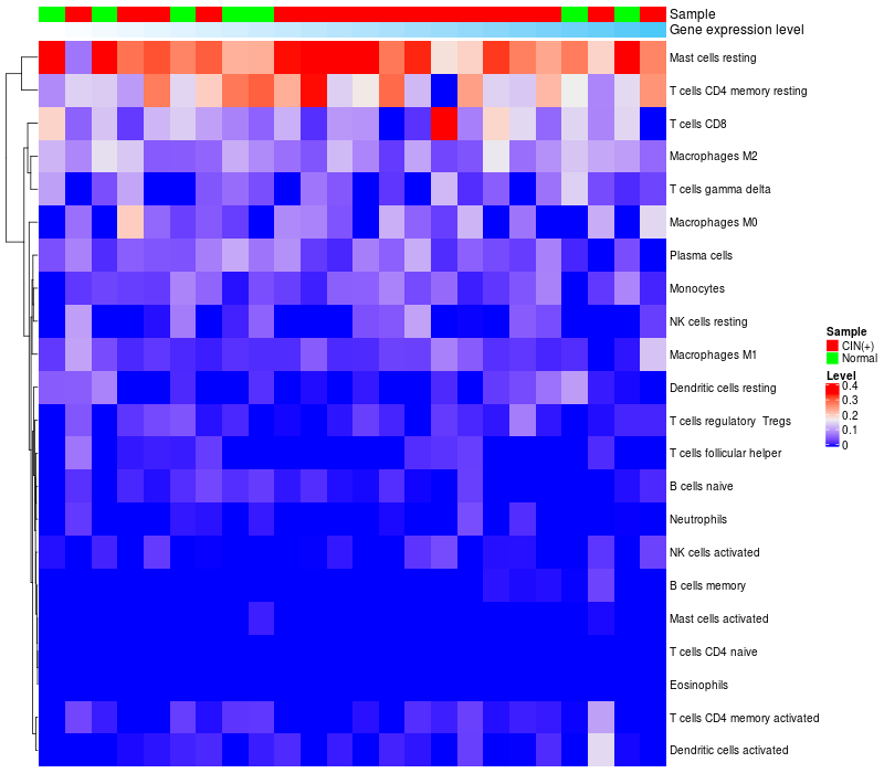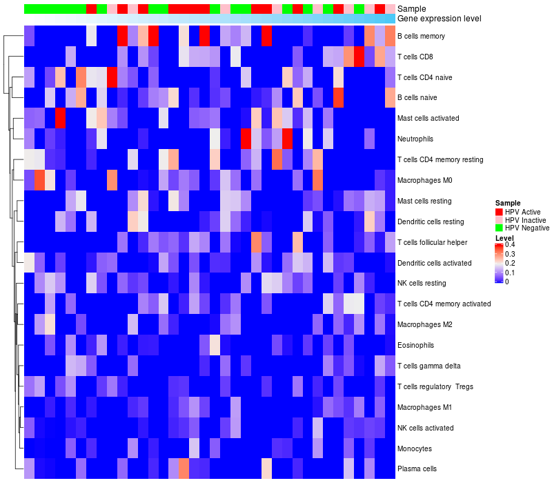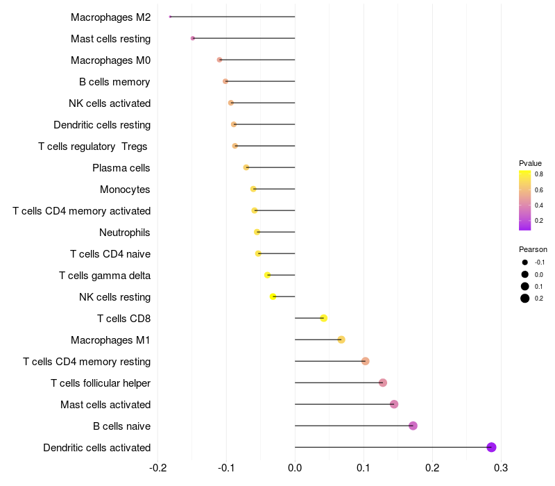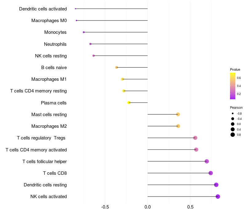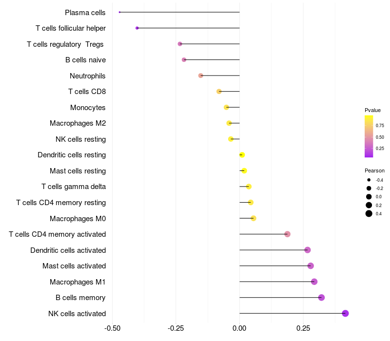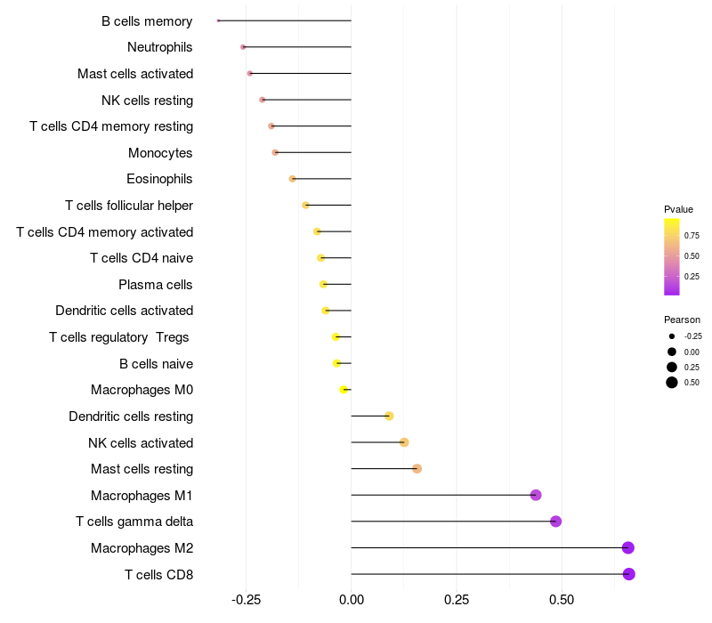 Lollipop of CACNG7 expression and immune infiltrating cell level correlation result in HPV+ samples