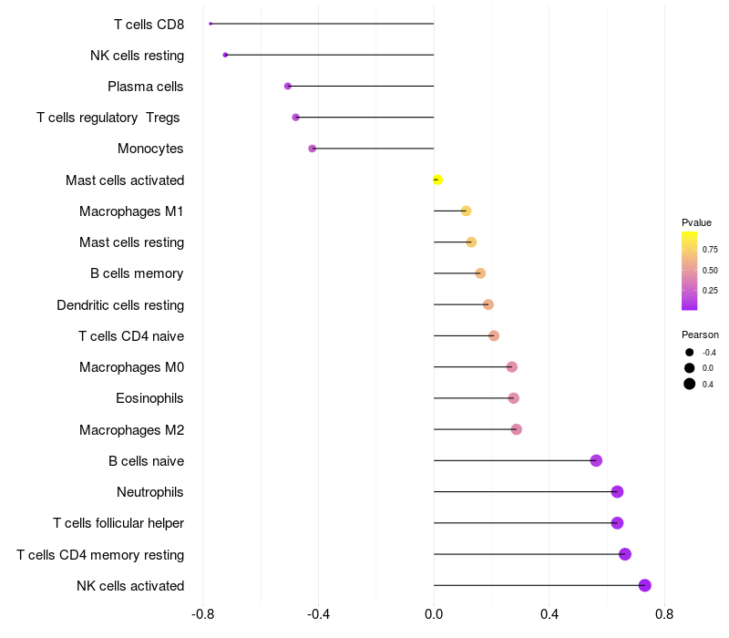 Lollipop of CACYBP expression and immune infiltrating cell level correlation result in HBV+ Liver cirrhosis samples
