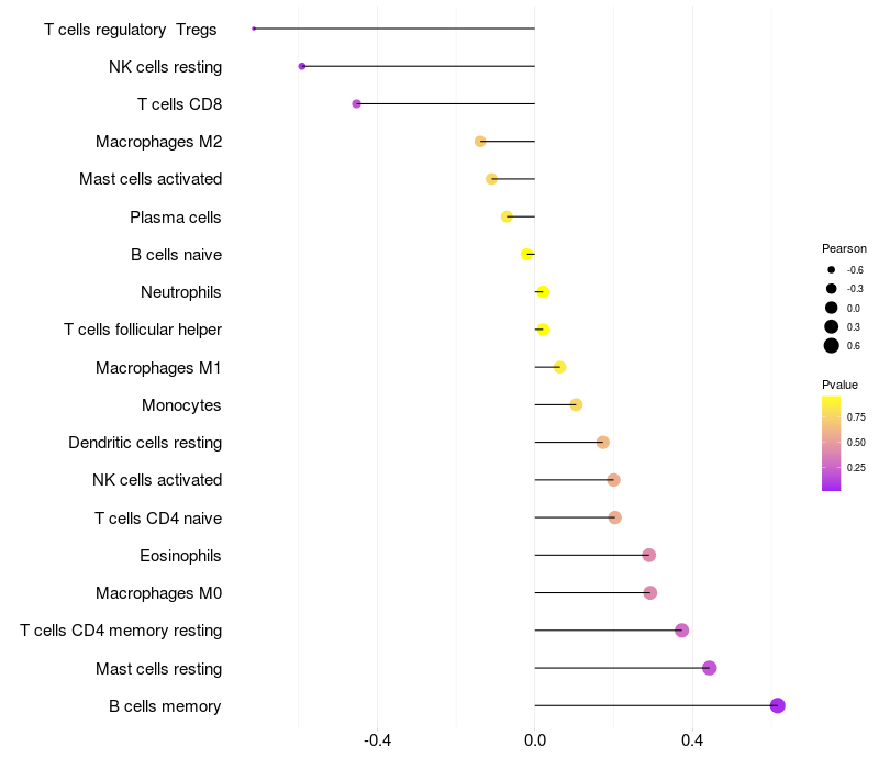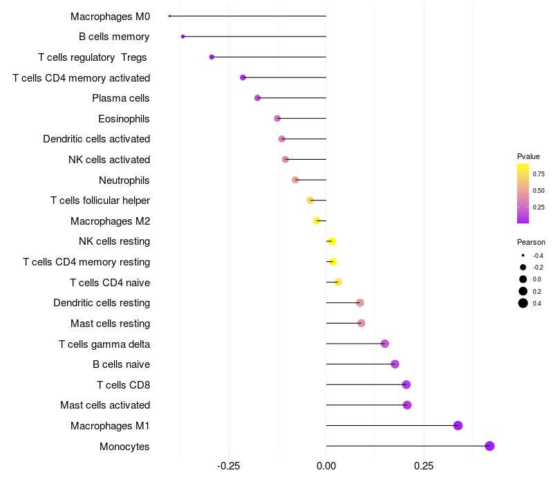 Lollipop of CALCOCO2 expression and immune infiltrating cell level correlation result in HBV+ Hepatocellular carcinoma samples