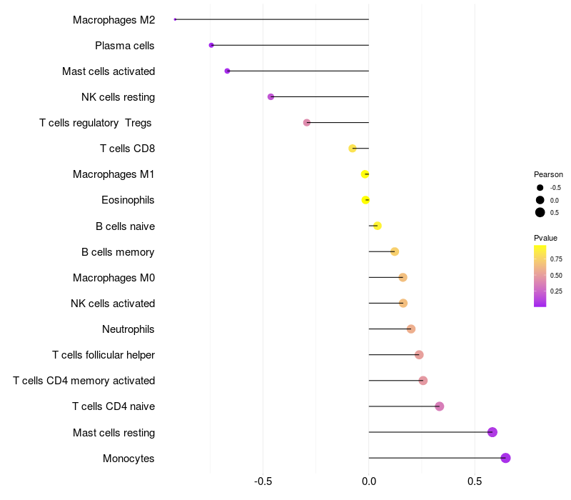 Lollipop of CALCOCO2 expression and immune infiltrating cell level correlation result in HBV+ Liver cirrhosis samples