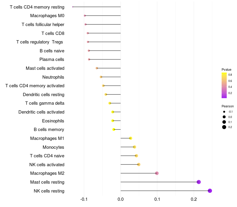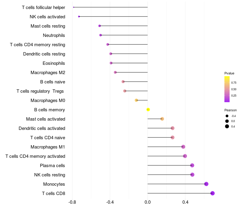 Lollipop of CAMK2A expression and immune infiltrating cell level correlation result in HBV+ samples