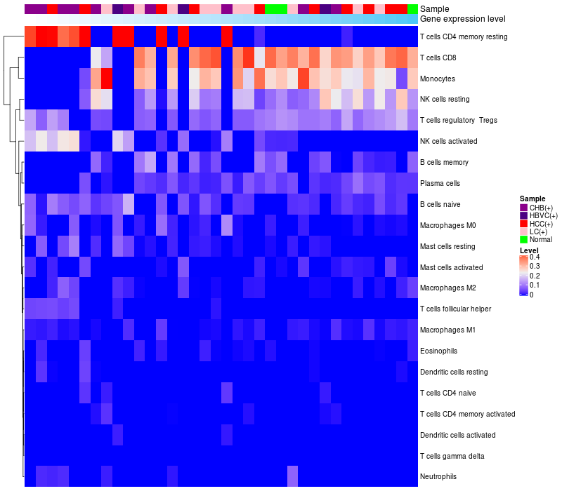 Relationship between gene expression and immune infiltrating cell level