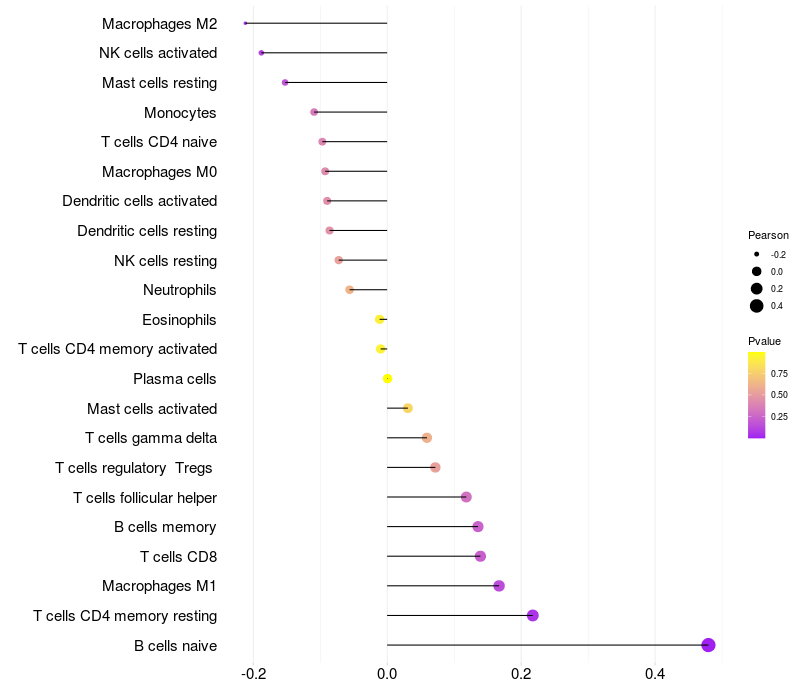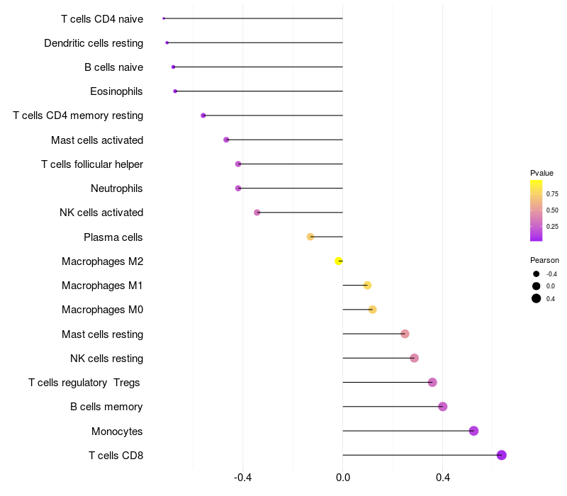 Lollipop of CAMK4 expression and immune infiltrating cell level correlation result in HBV+ Liver cirrhosis samples