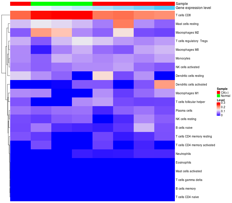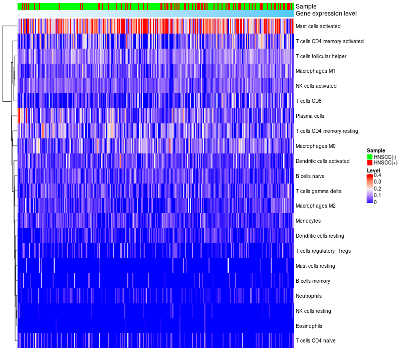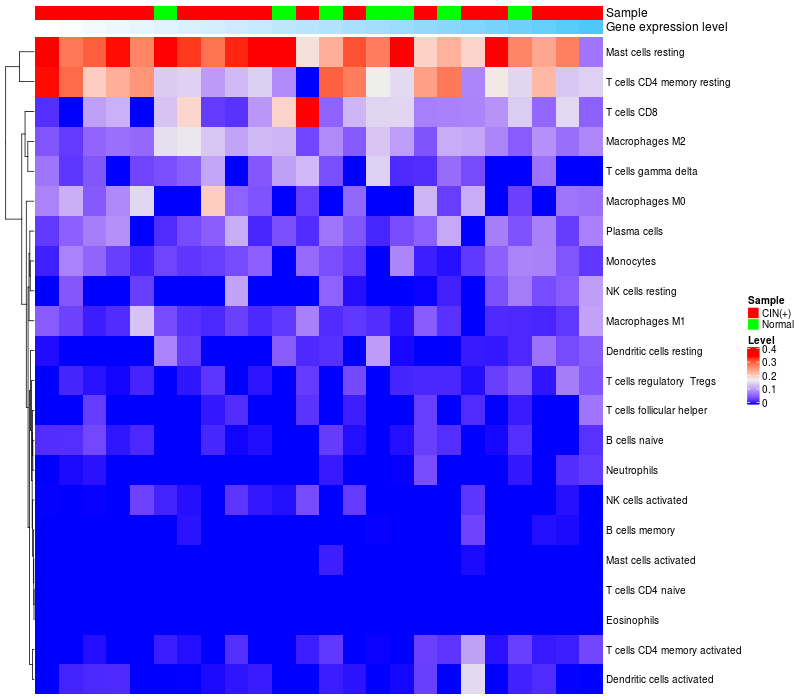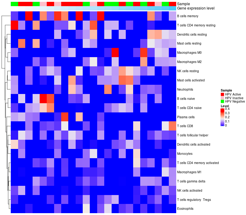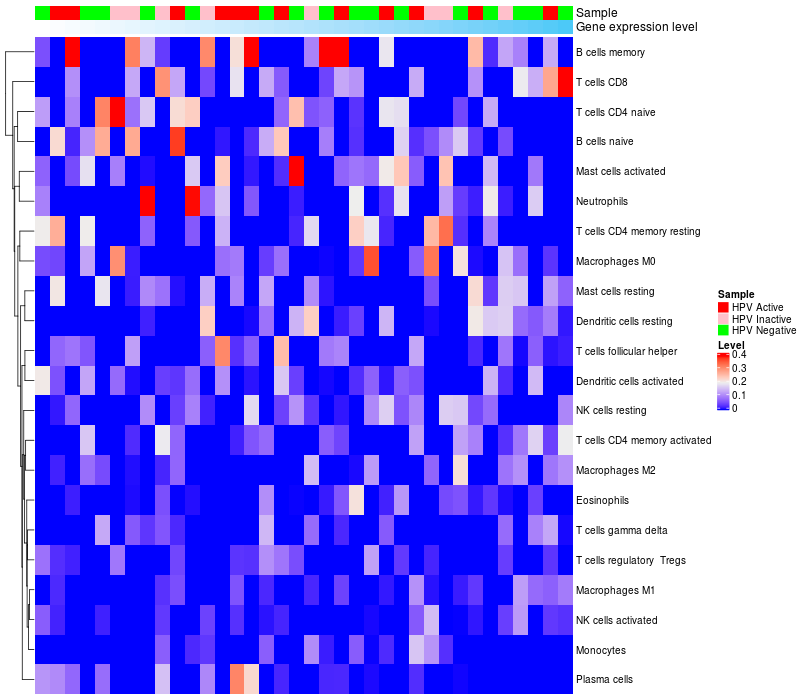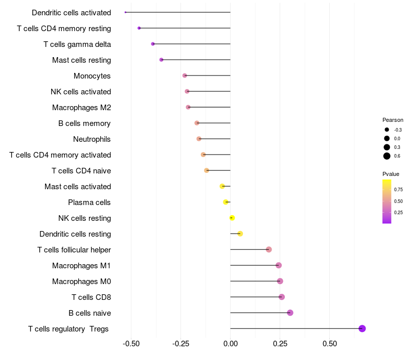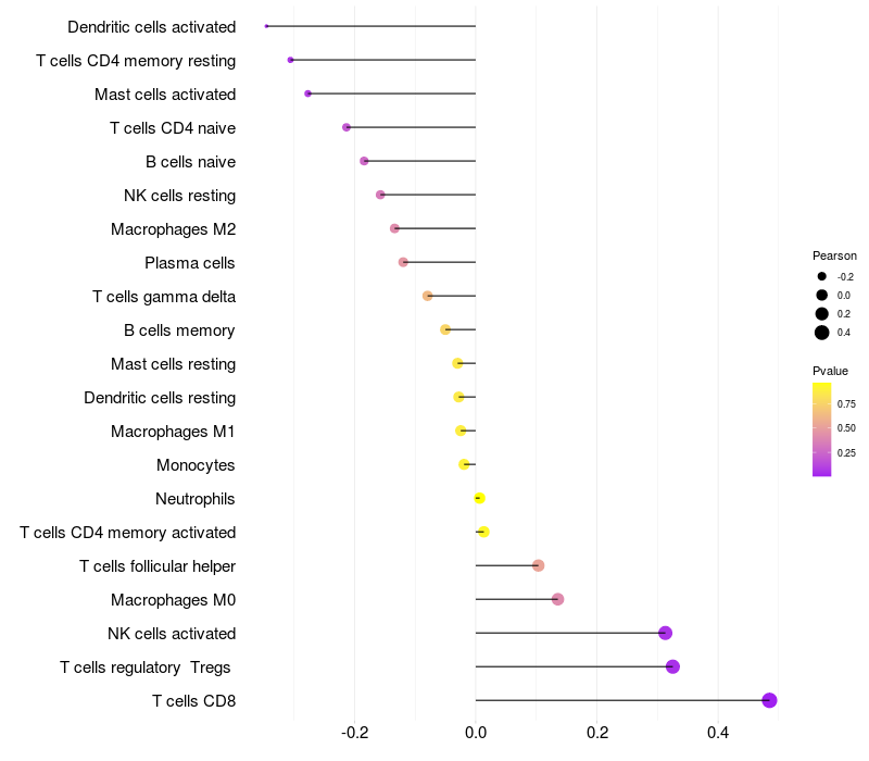 Lollipop of CAPG expression and immune infiltrating cell level correlation result in HPV+ samples