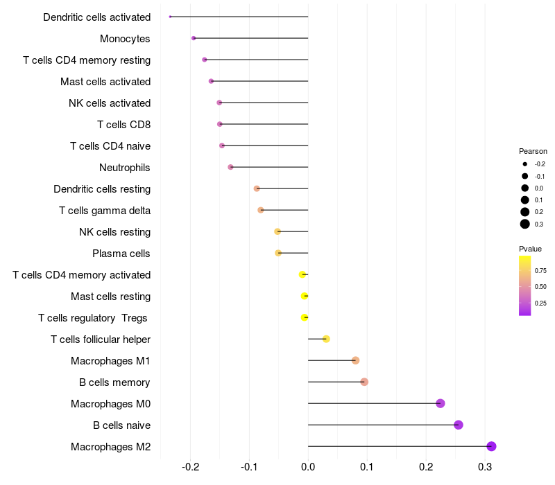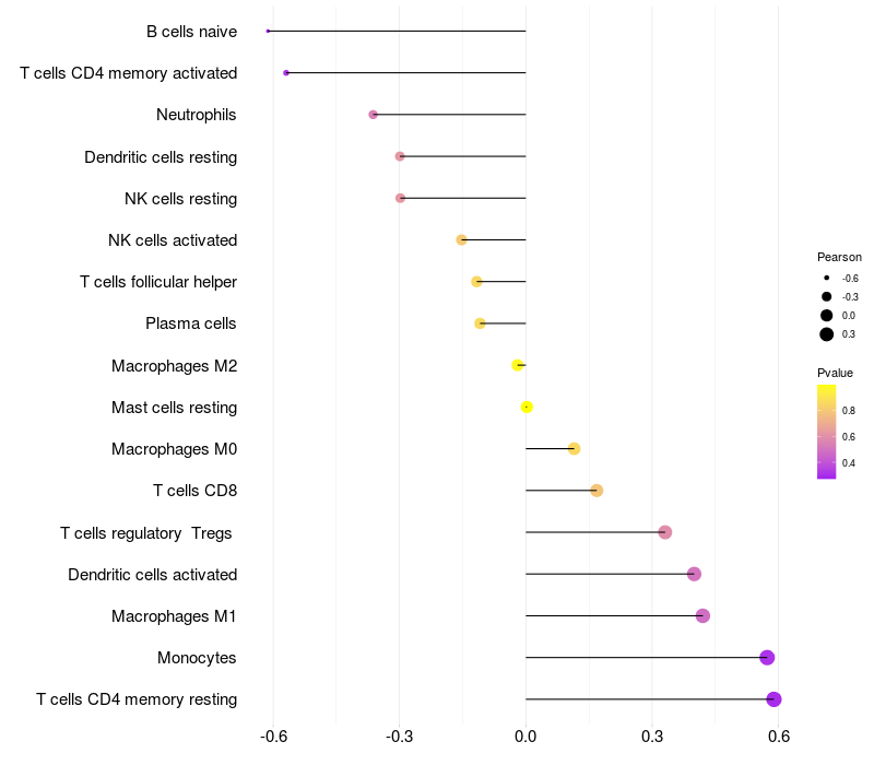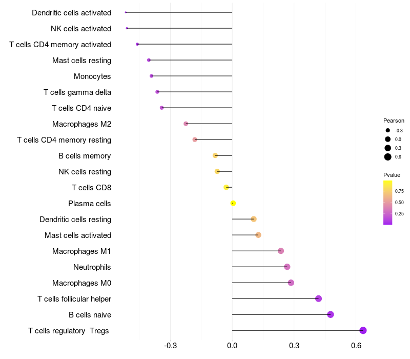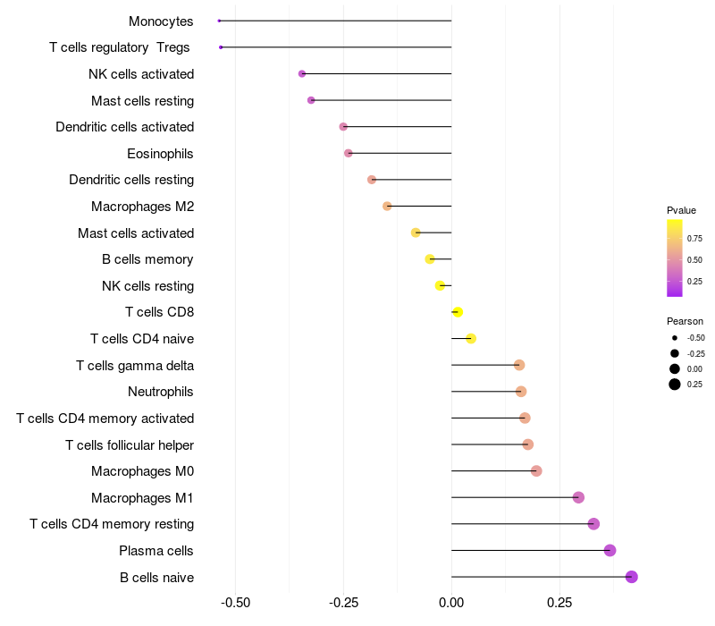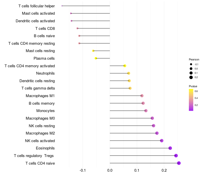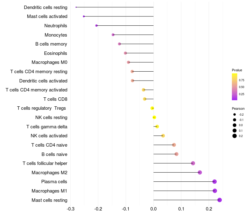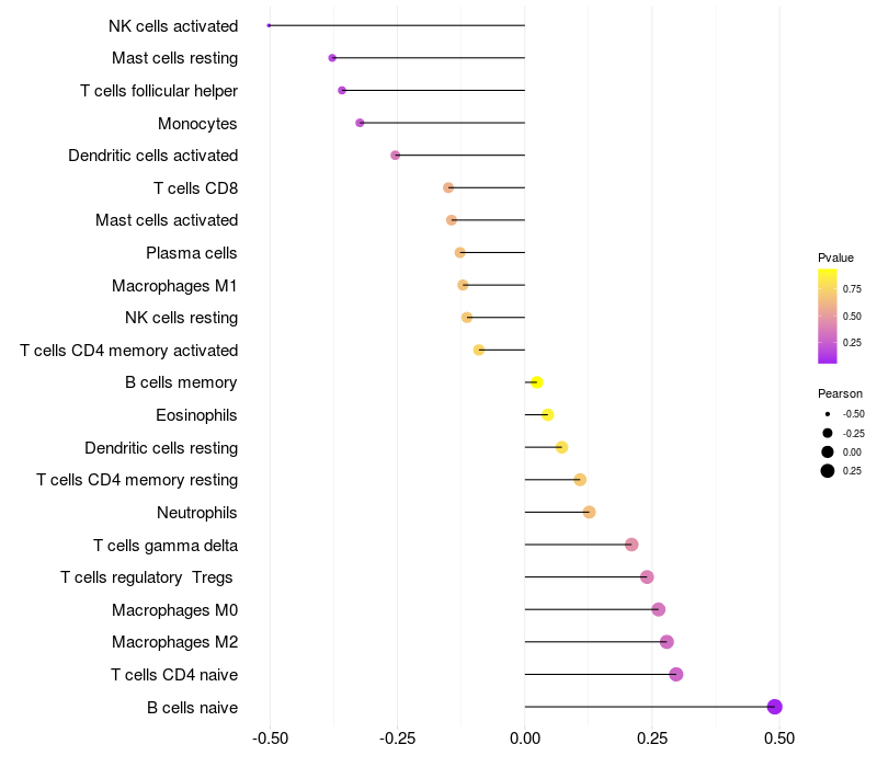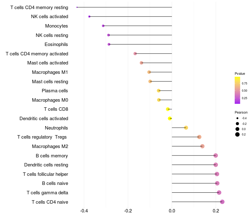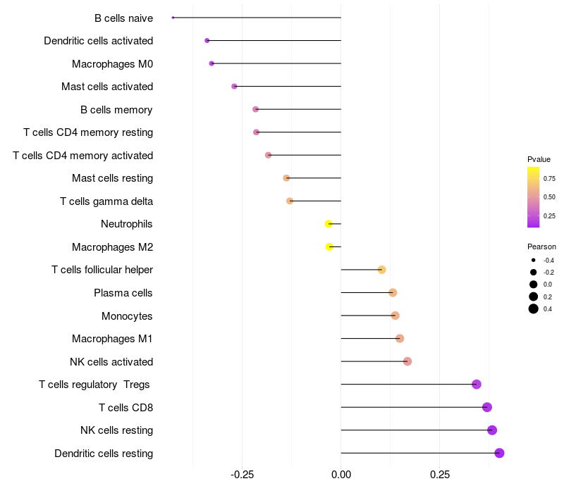 Lollipop of CAPN3 expression and immune infiltrating cell level correlation result in HPV+ samples