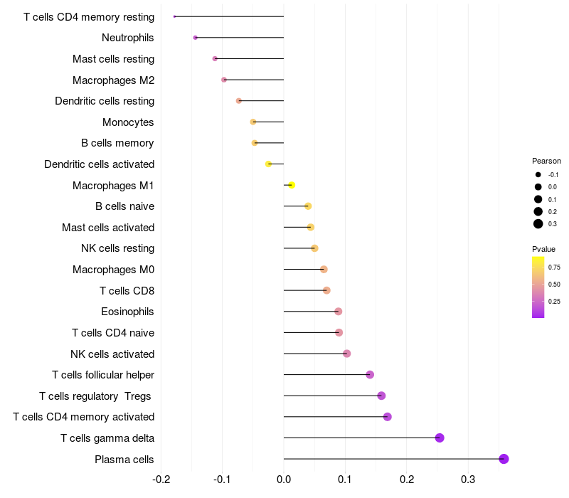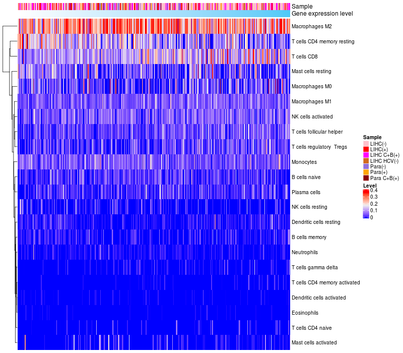 Relationship between gene expression and immune infiltrating cell level