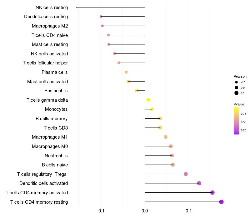 Lollipop of CASP10 expression and immune infiltrating cell level correlation result in HBV+ samples