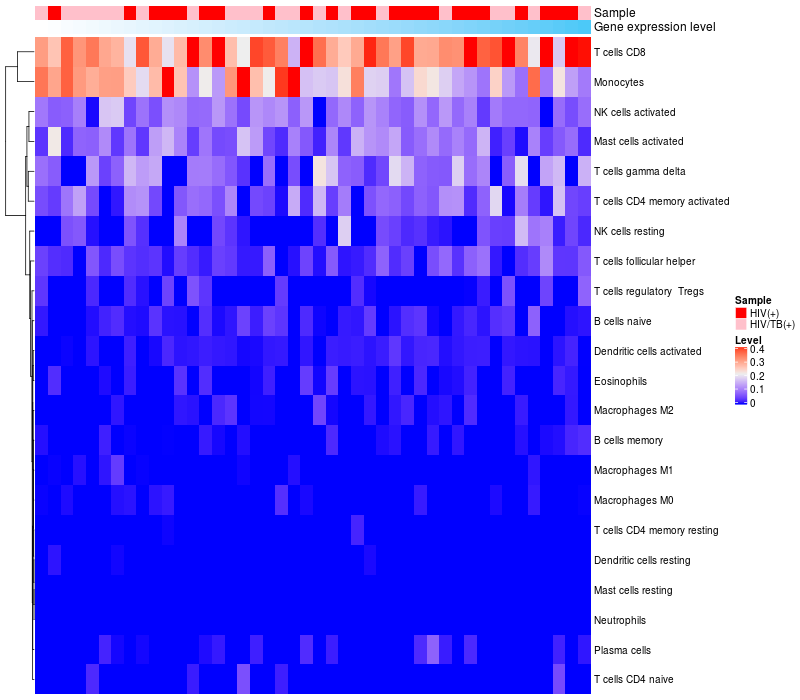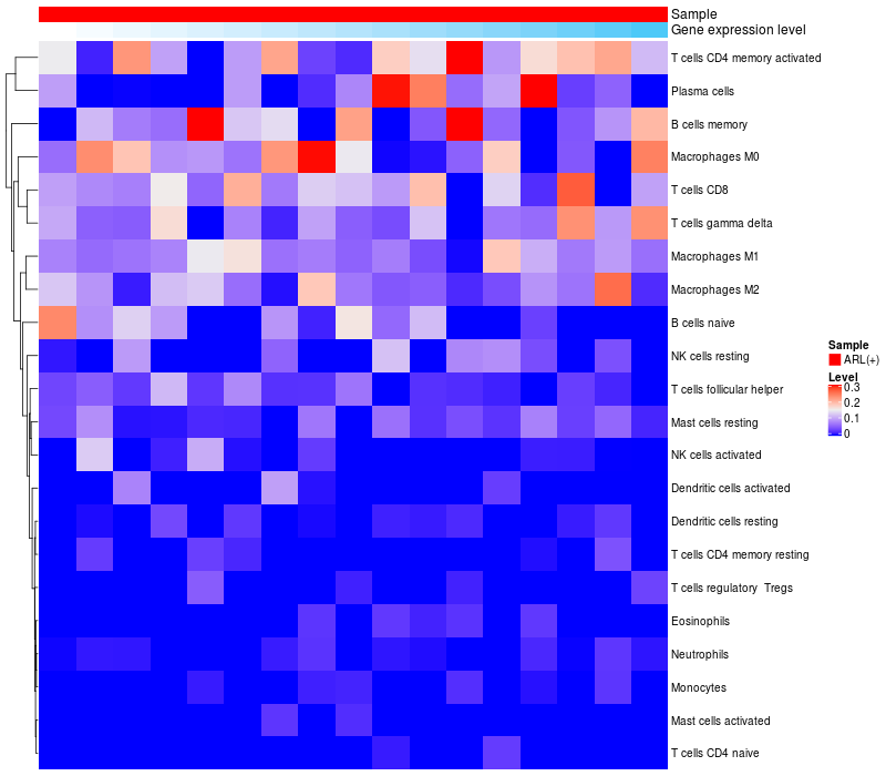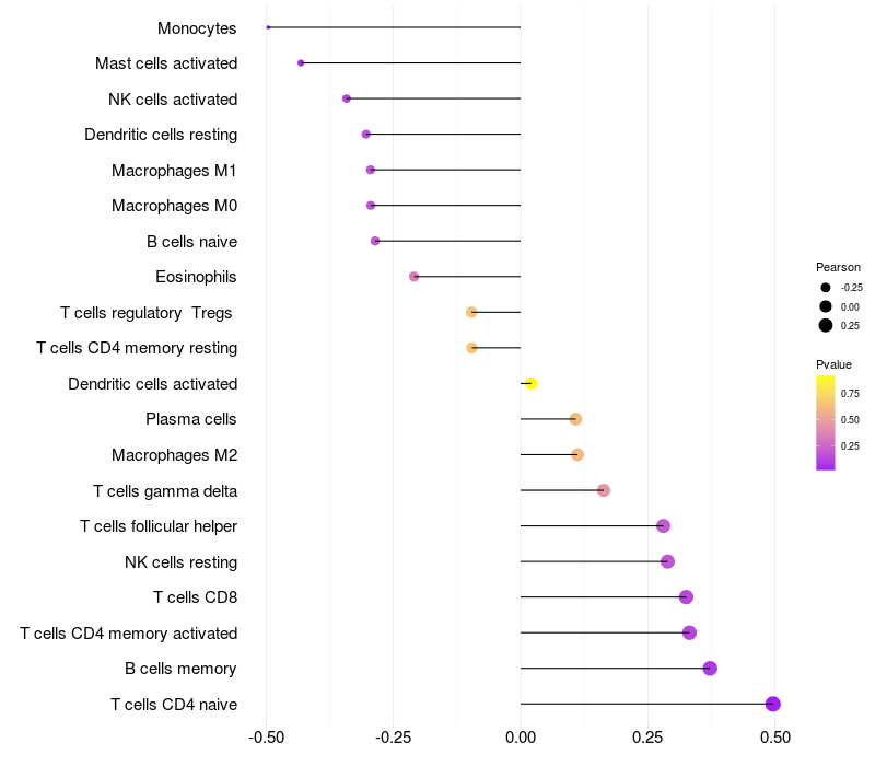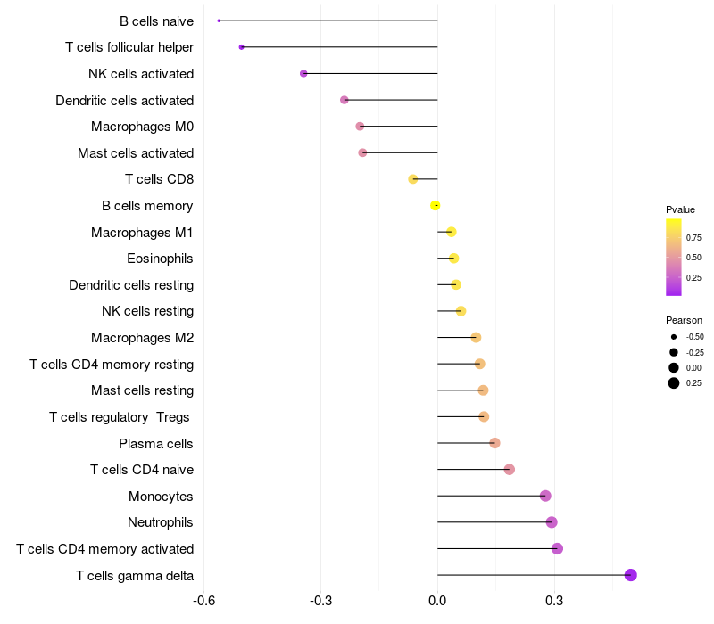Relationship between gene expression and immune infiltrating cell level