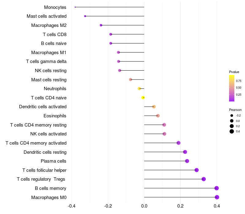 Relationship between gene expression and immune infiltrating cell level