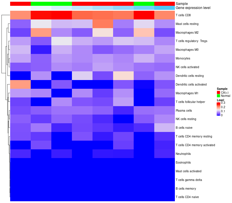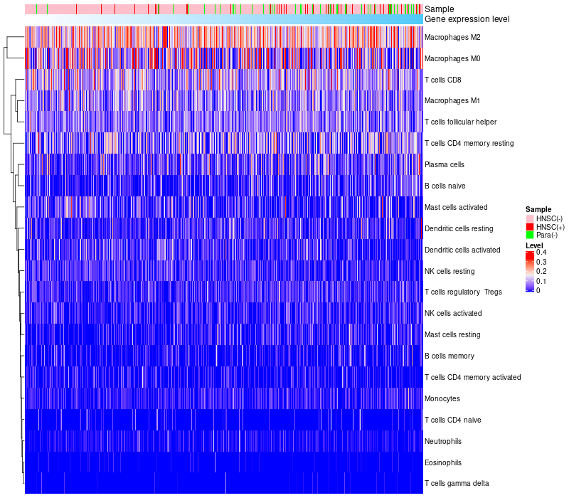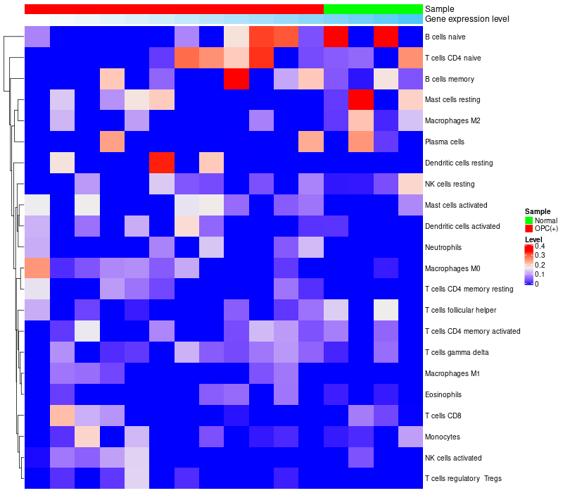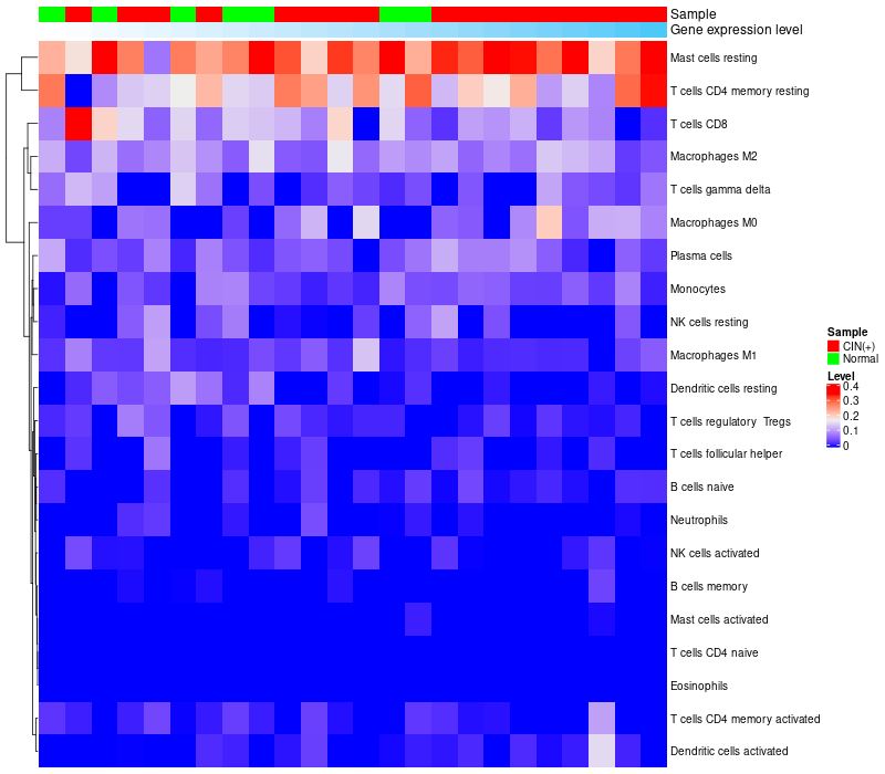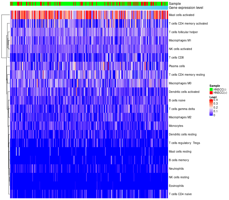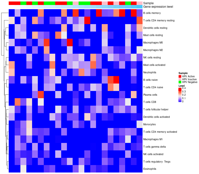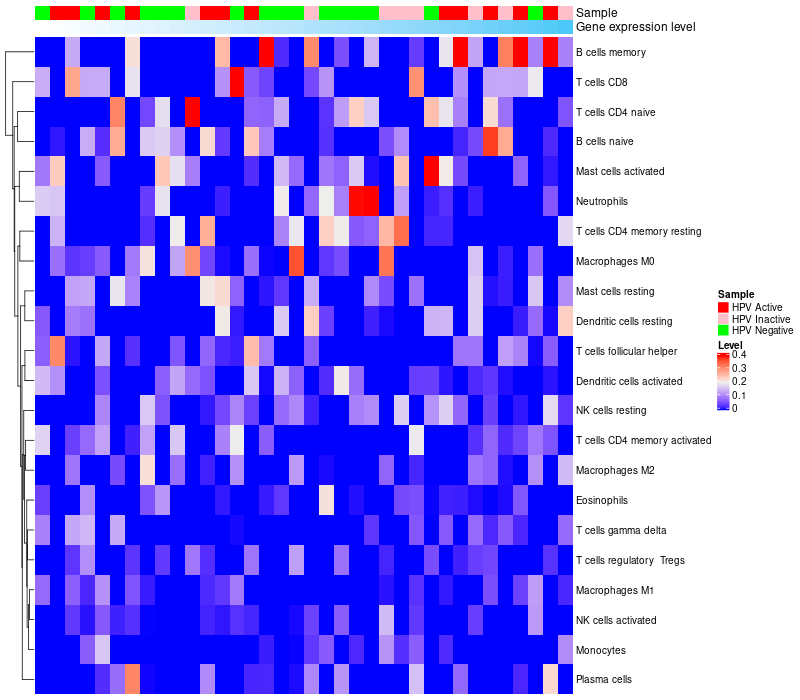 Lollipop of CBLN1 expression and immune infiltrating cell level correlation result in HPV+ samples