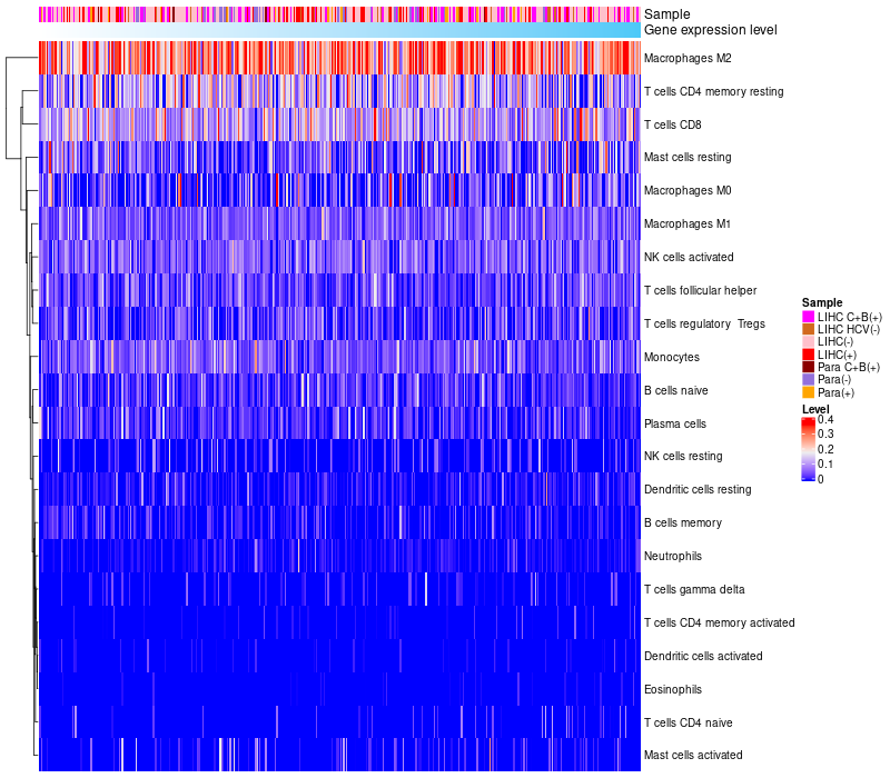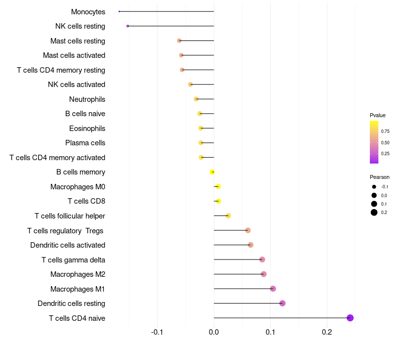 Relationship between gene expression and immune infiltrating cell level
