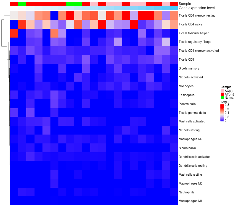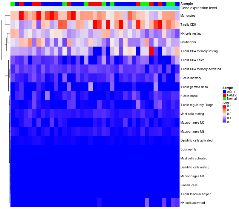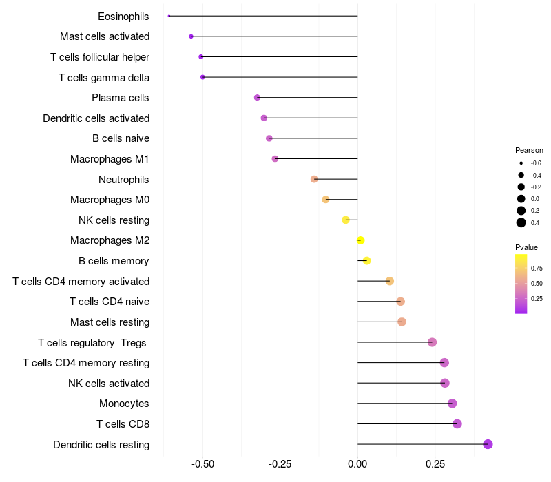 Relationship between gene expression and immune infiltrating cell level