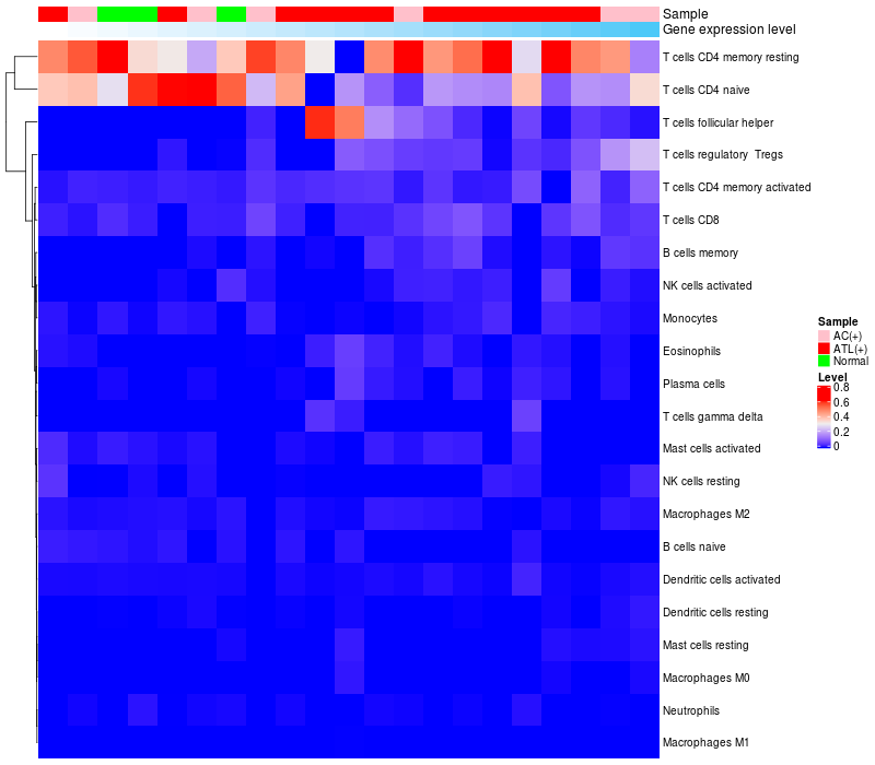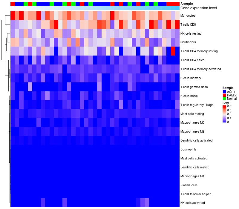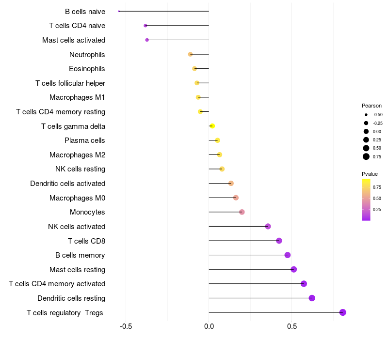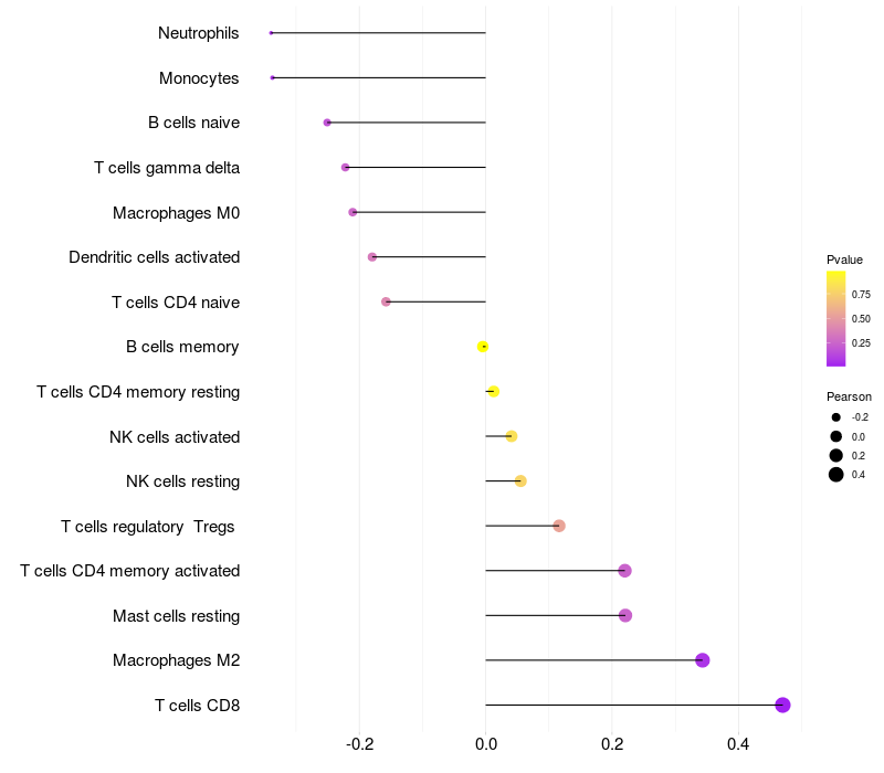 Relationship between gene expression and immune infiltrating cell level