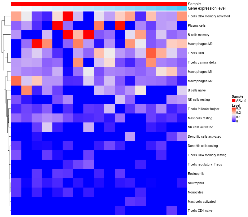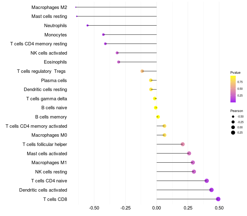 Relationship between gene expression and immune infiltrating cell level