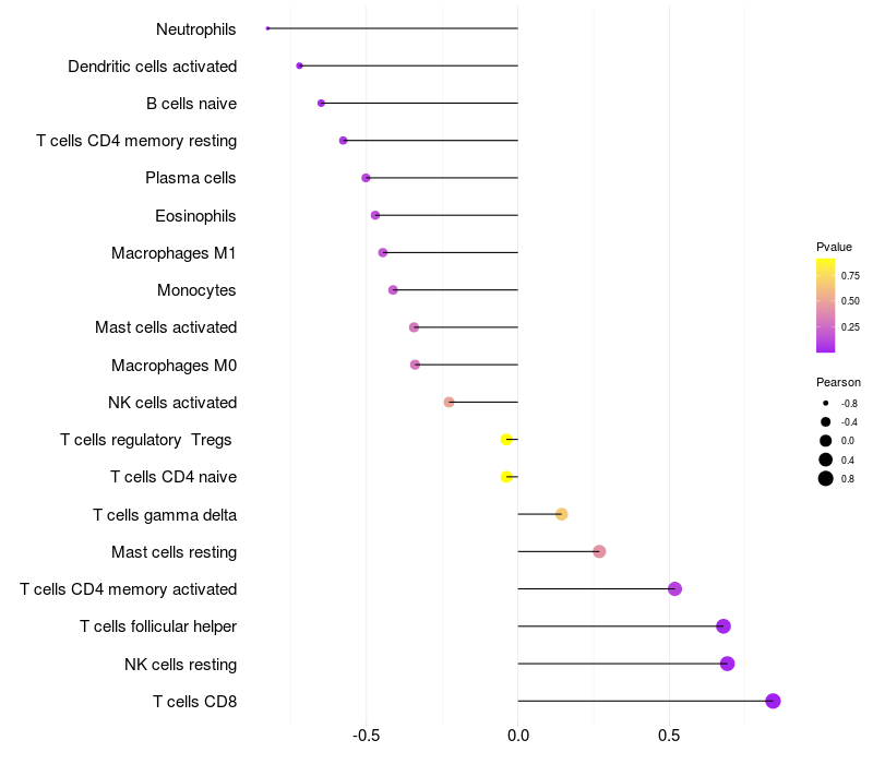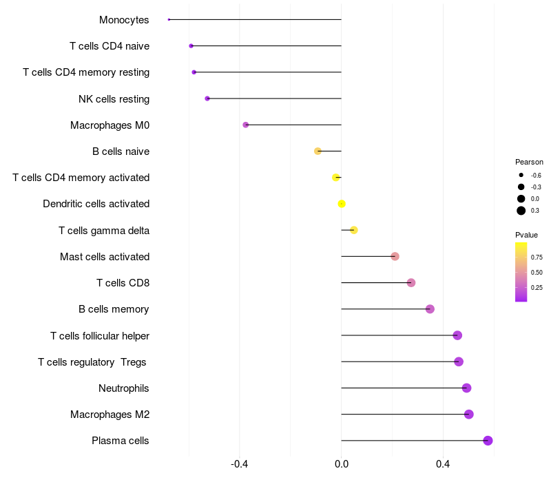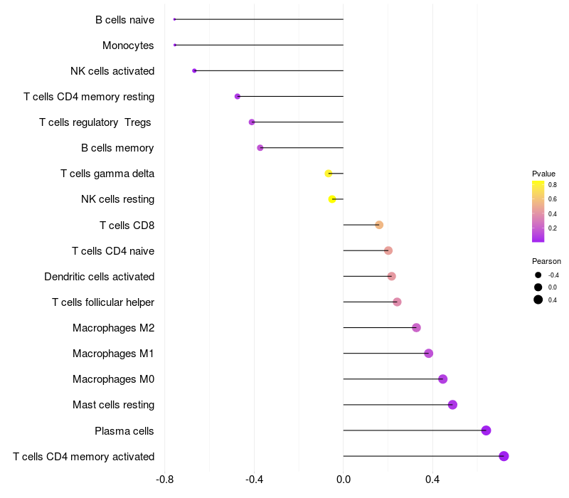 Lollipop of CCDC138 expression and immune infiltrating cell level correlation result in EBV+ samples
