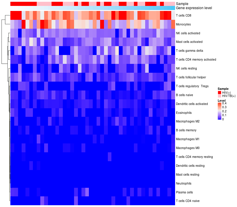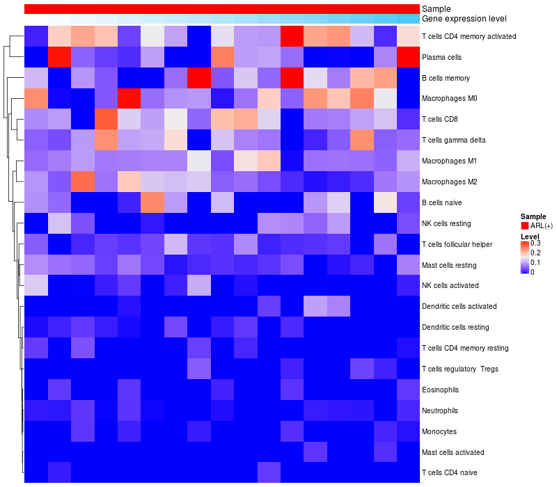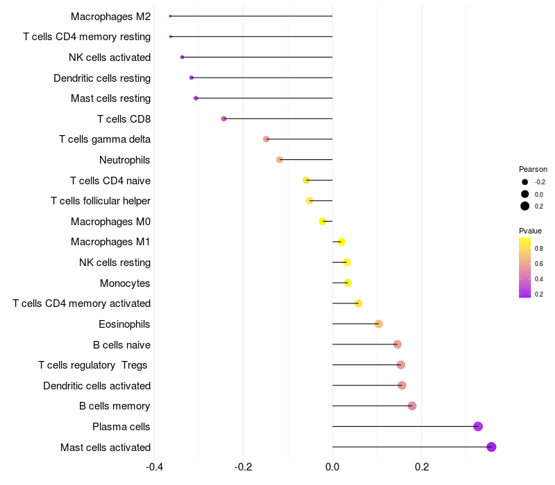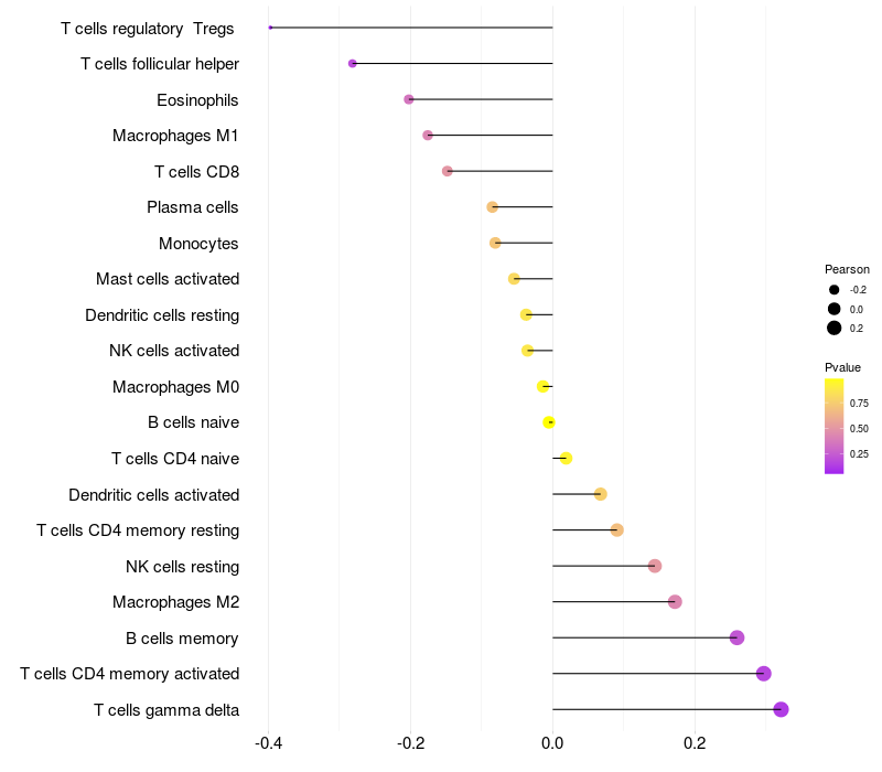 Relationship between gene expression and immune infiltrating cell level