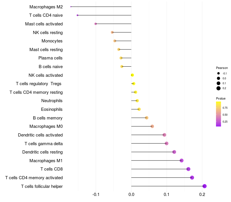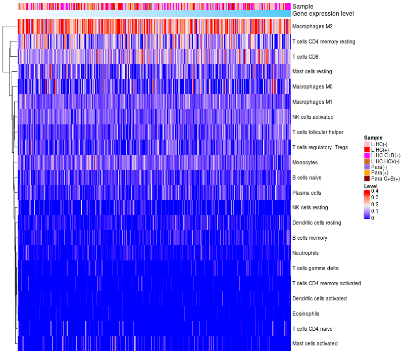 Relationship between gene expression and immune infiltrating cell level