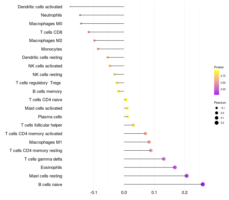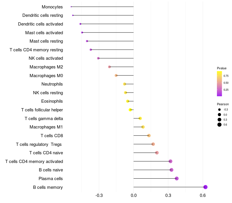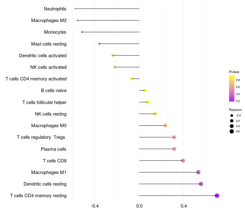 HeatMap of cell type fractions in all samples Lollipop of CCDC167 expression and immune infiltrating cell level correlation result in HPV+ samples