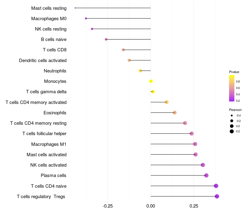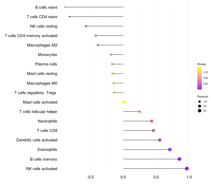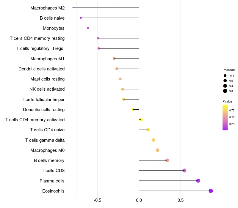 Lollipop of CCDC171 expression and immune infiltrating cell level correlation result in EBV+ samples