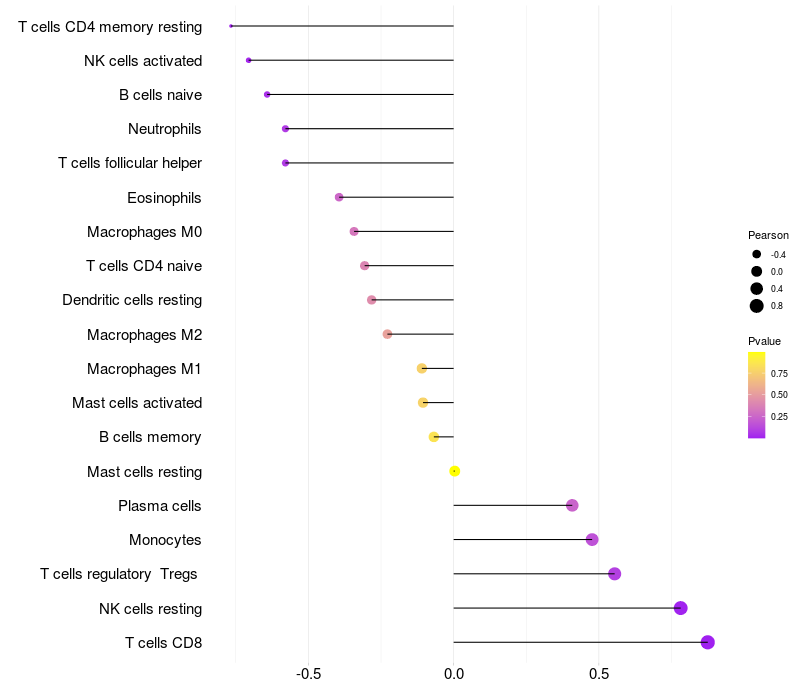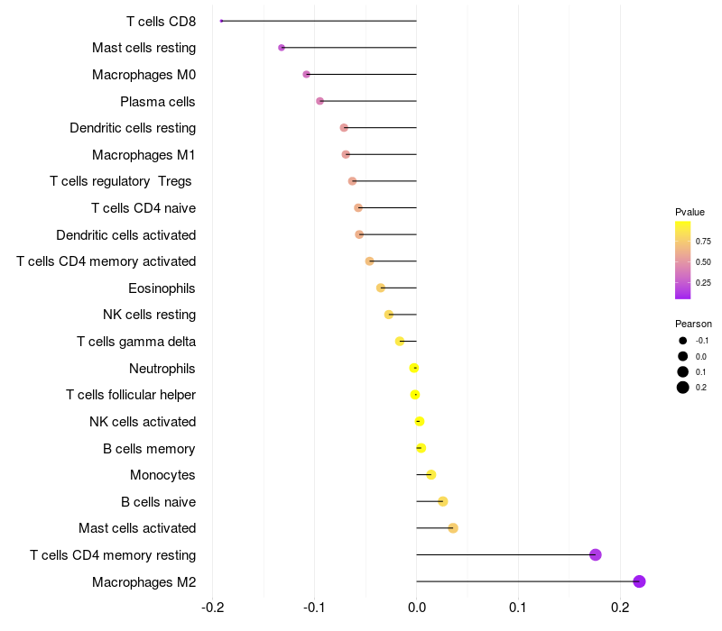 Lollipop of CCDC33 expression and immune infiltrating cell level correlation result in HBV+ samples