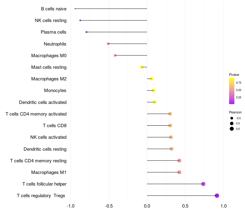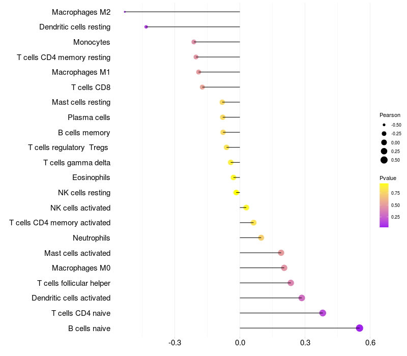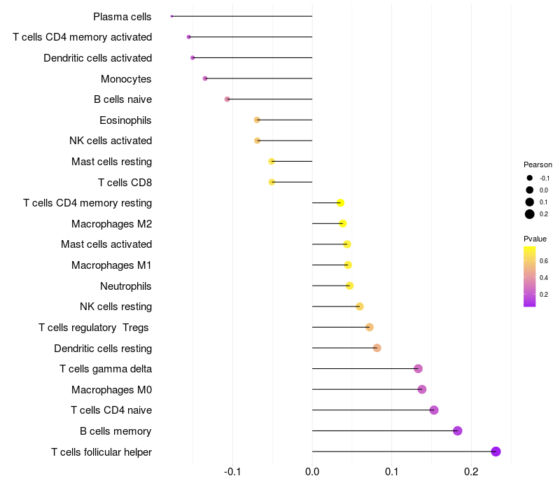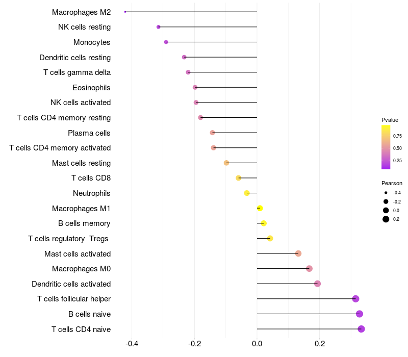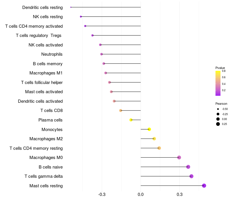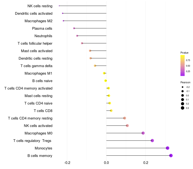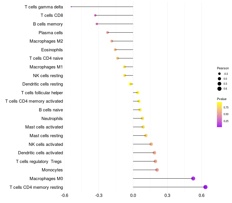 Lollipop of CCDC81 expression and immune infiltrating cell level correlation result in HPV+ samples