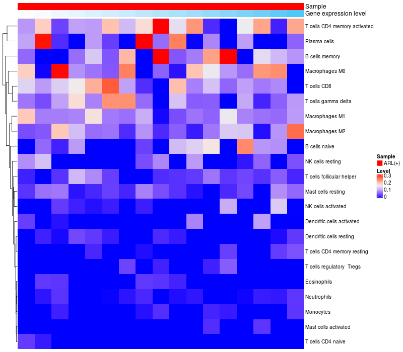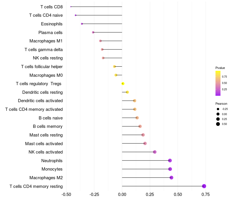 Relationship between gene expression and immune infiltrating cell level