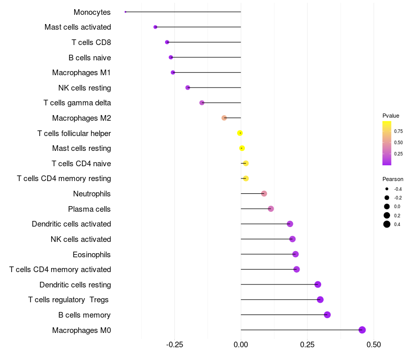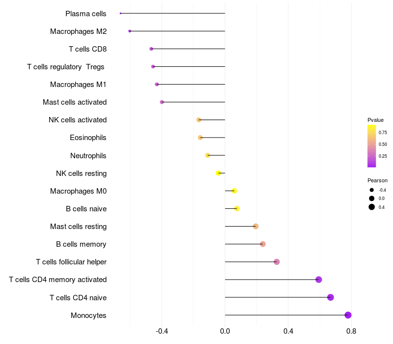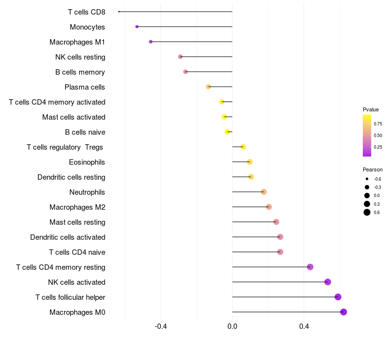 Lollipop of CCDC93 expression and immune infiltrating cell level correlation result in HBV+ samples