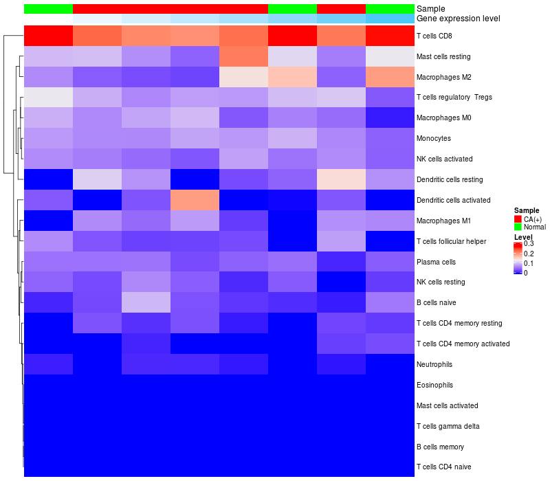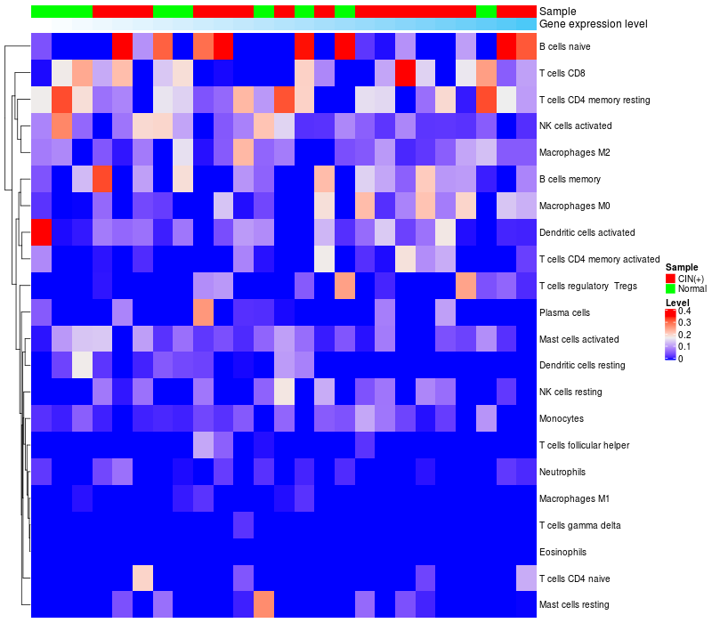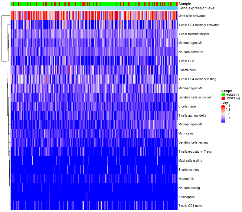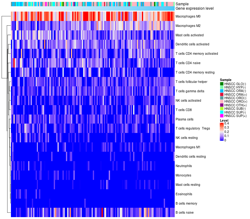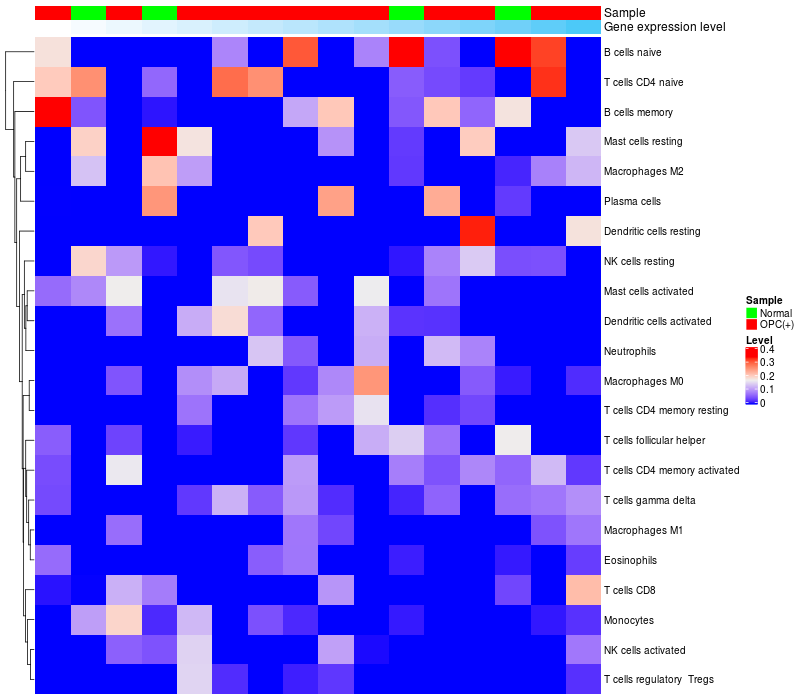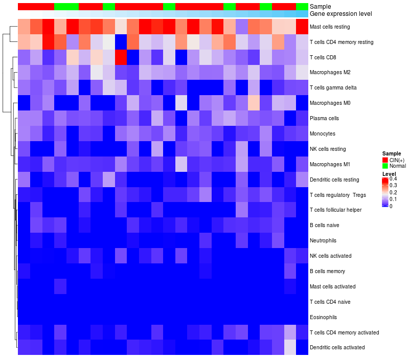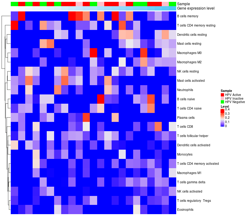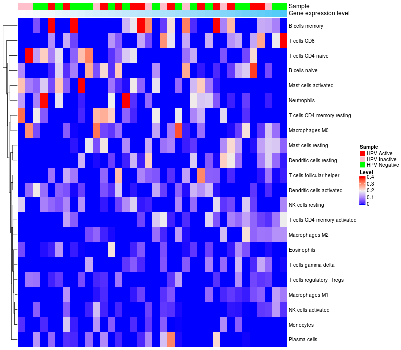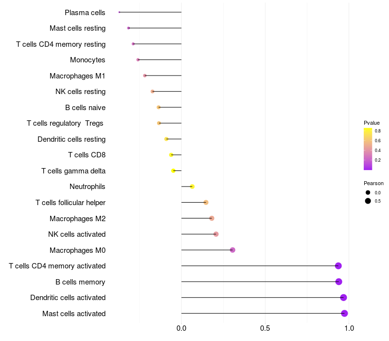 Lollipop of CCL18 expression and immune infiltrating cell level correlation result in HPV+ samples