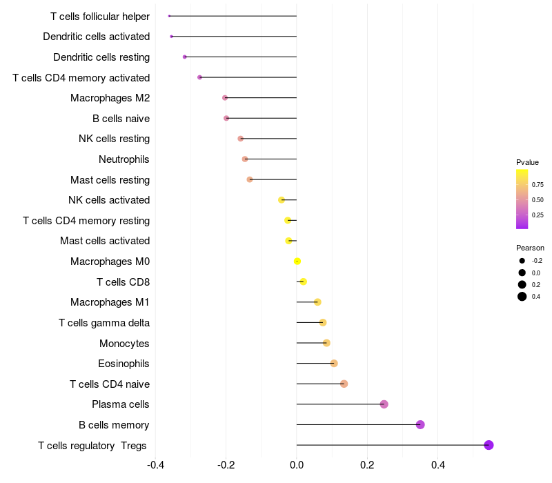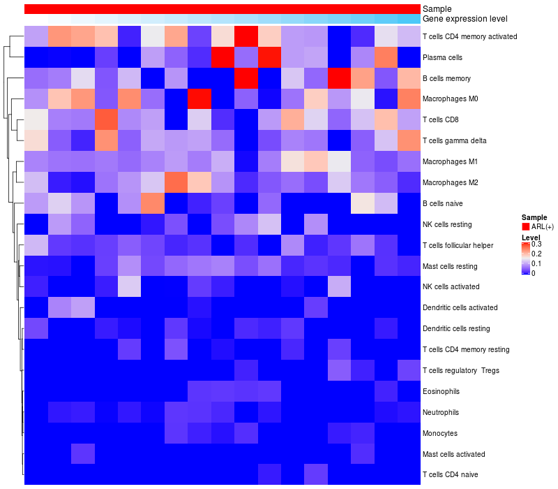 Relationship between gene expression and immune infiltrating cell level