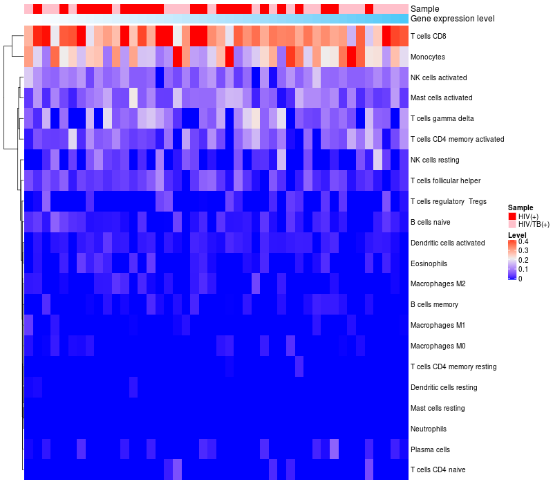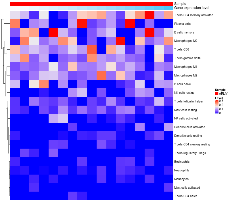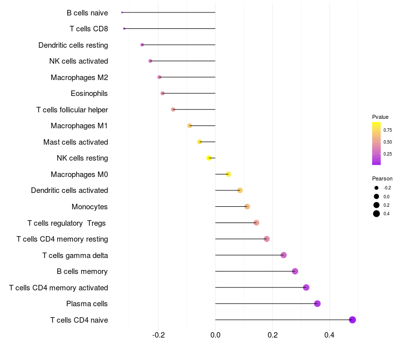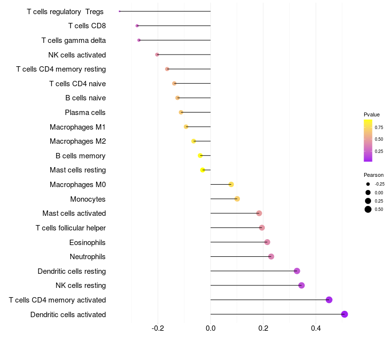 Relationship between gene expression and immune infiltrating cell level