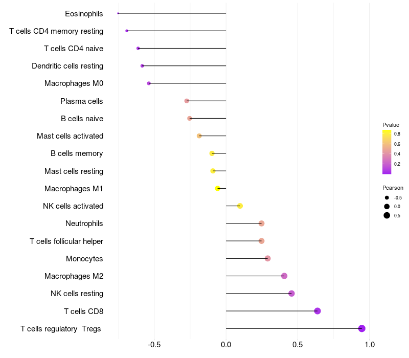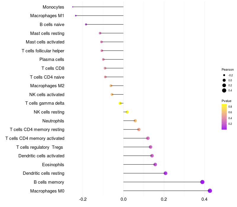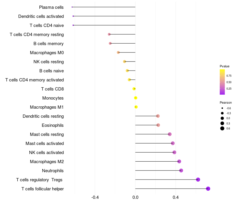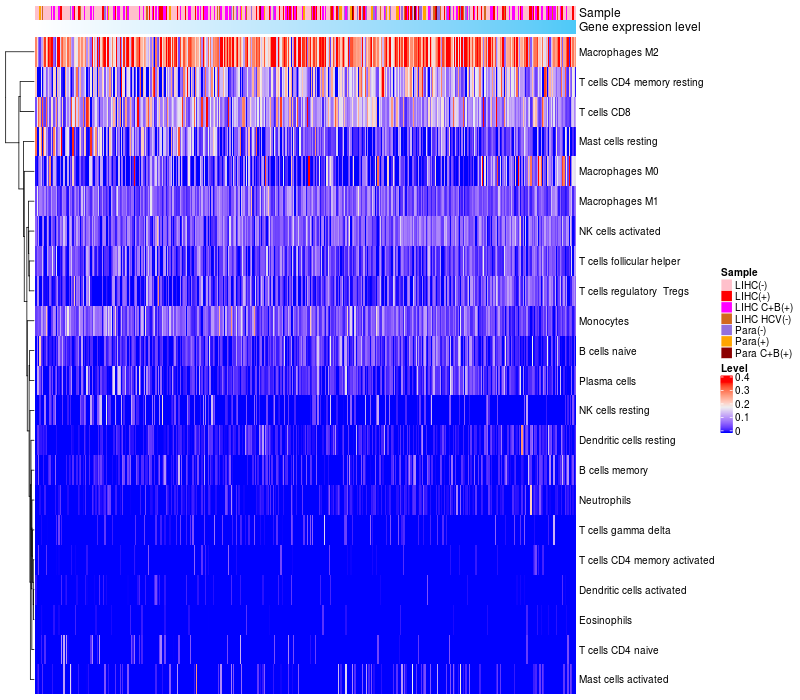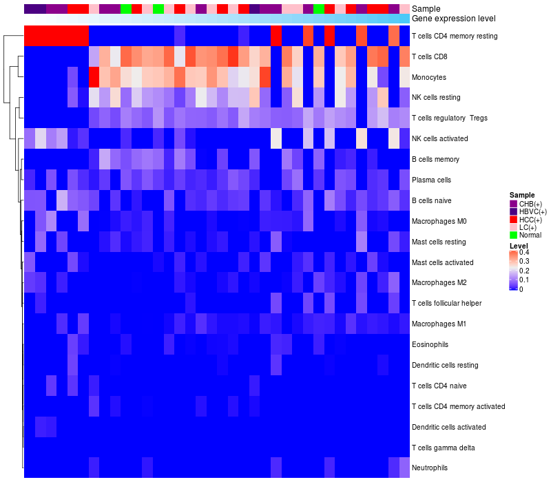 Relationship between gene expression and immune infiltrating cell level