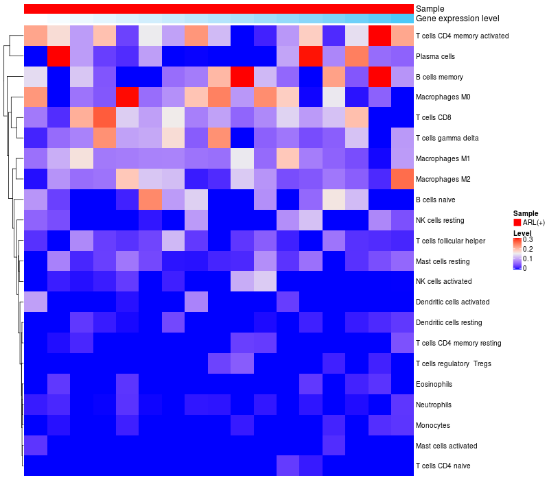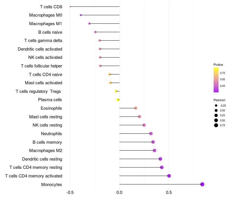 Relationship between gene expression and immune infiltrating cell level