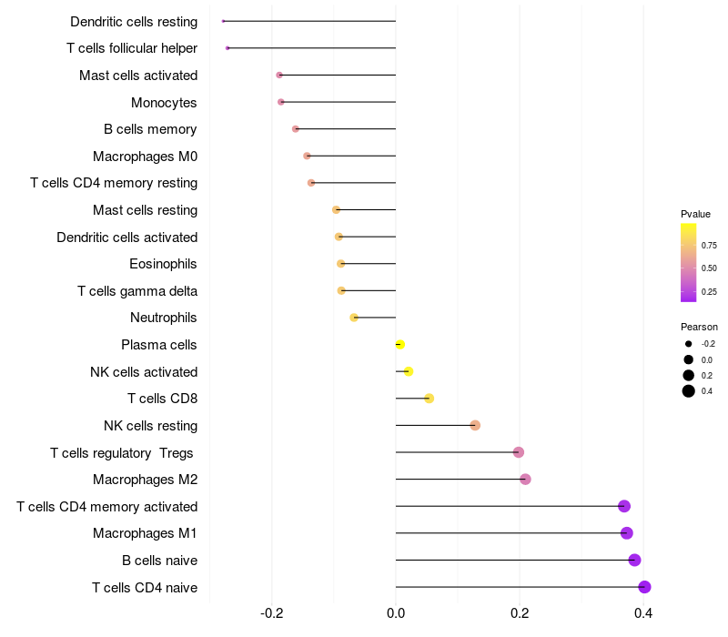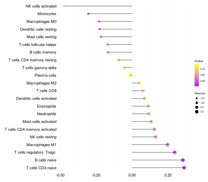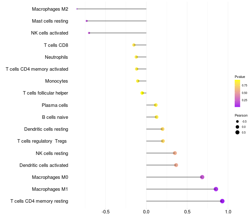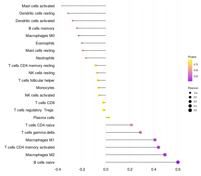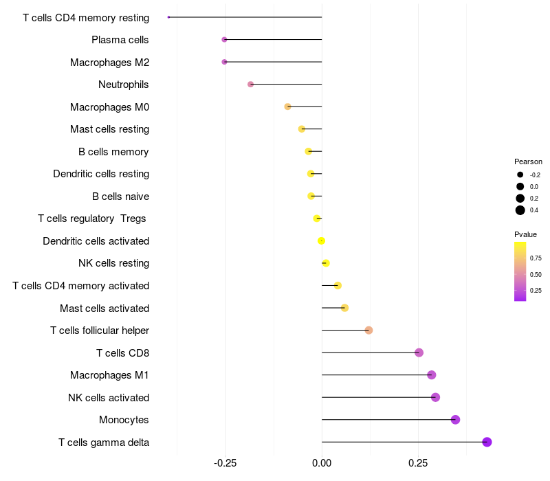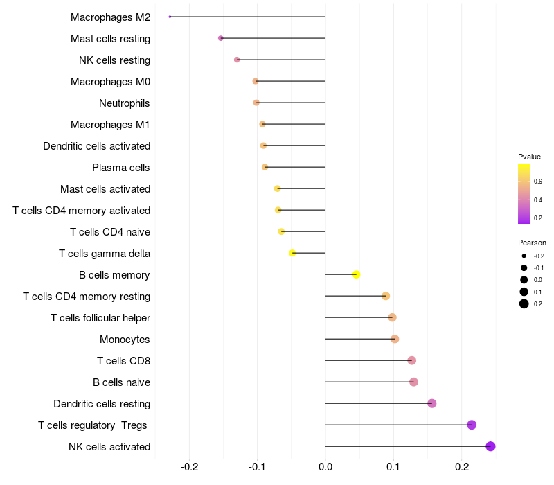 Lollipop of CCT8L2 expression and immune infiltrating cell level correlation result in HPV+ samples