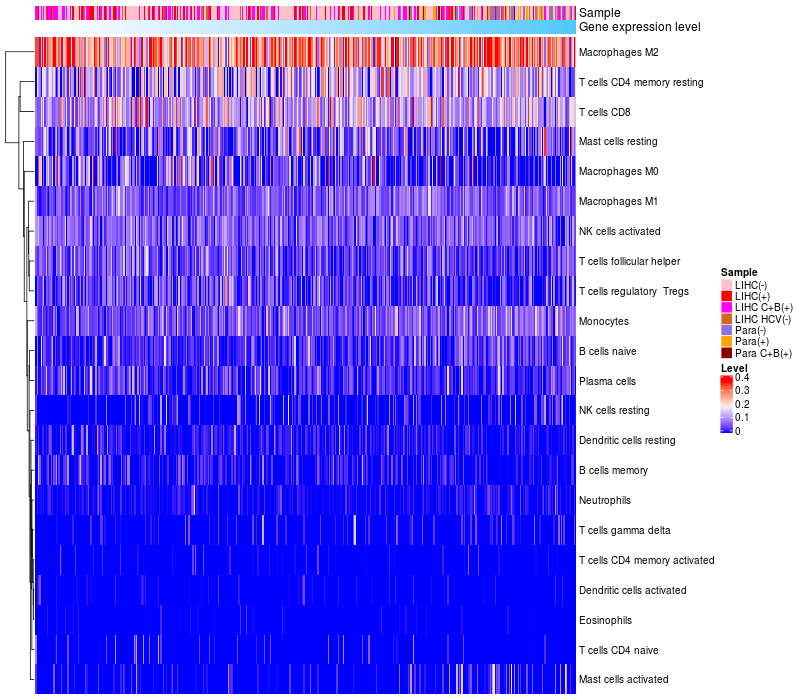 Relationship between gene expression and immune infiltrating cell level