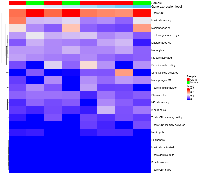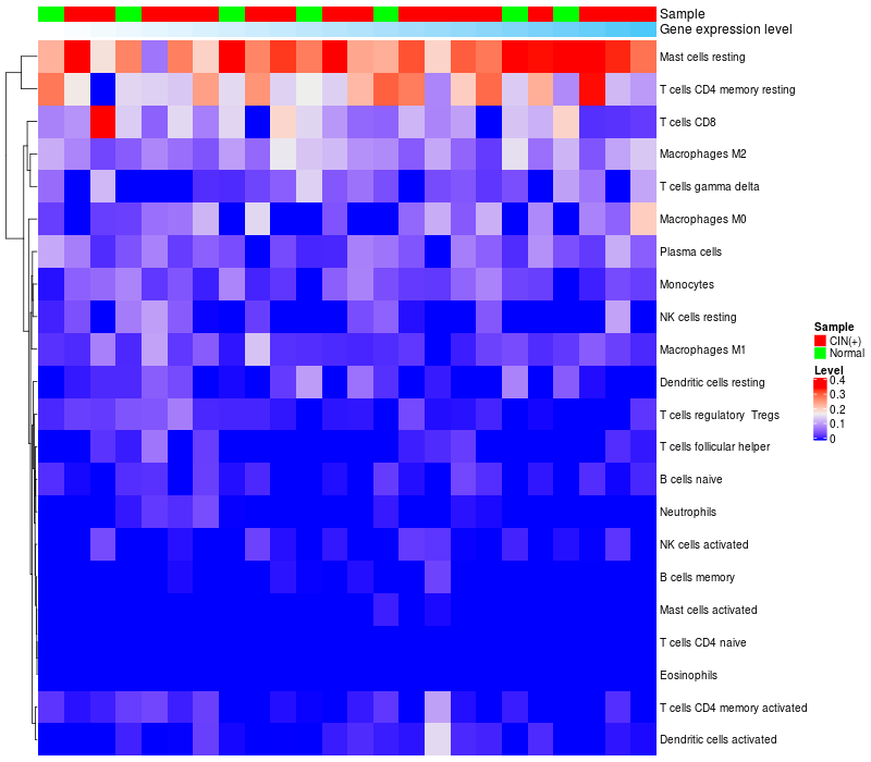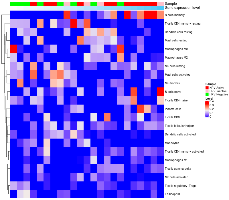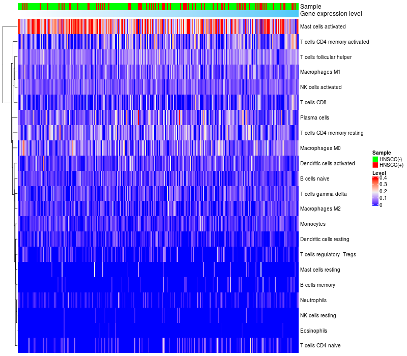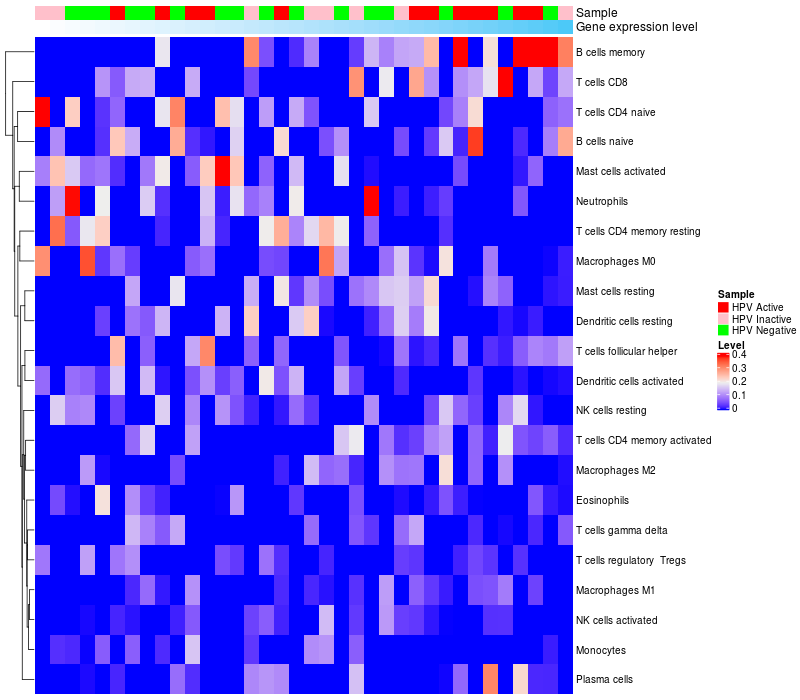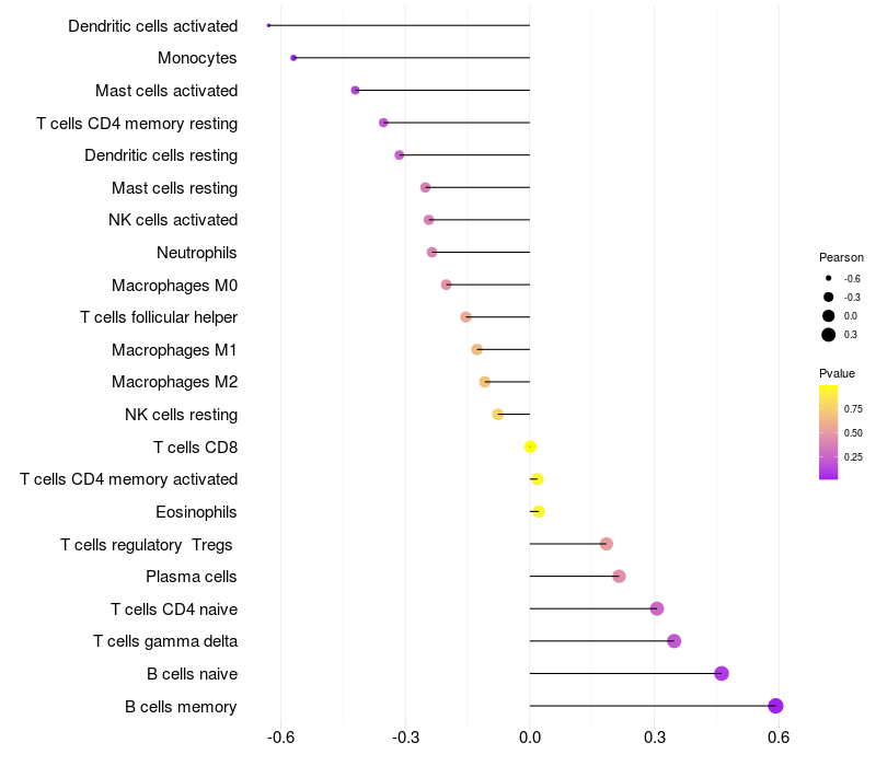 Lollipop of CD180 expression and immune infiltrating cell level correlation result in HPV+ samples