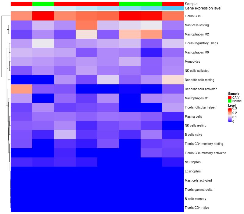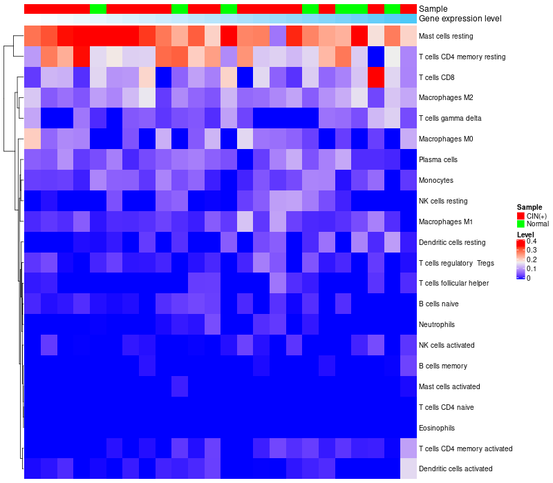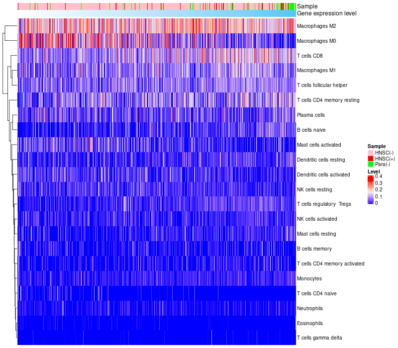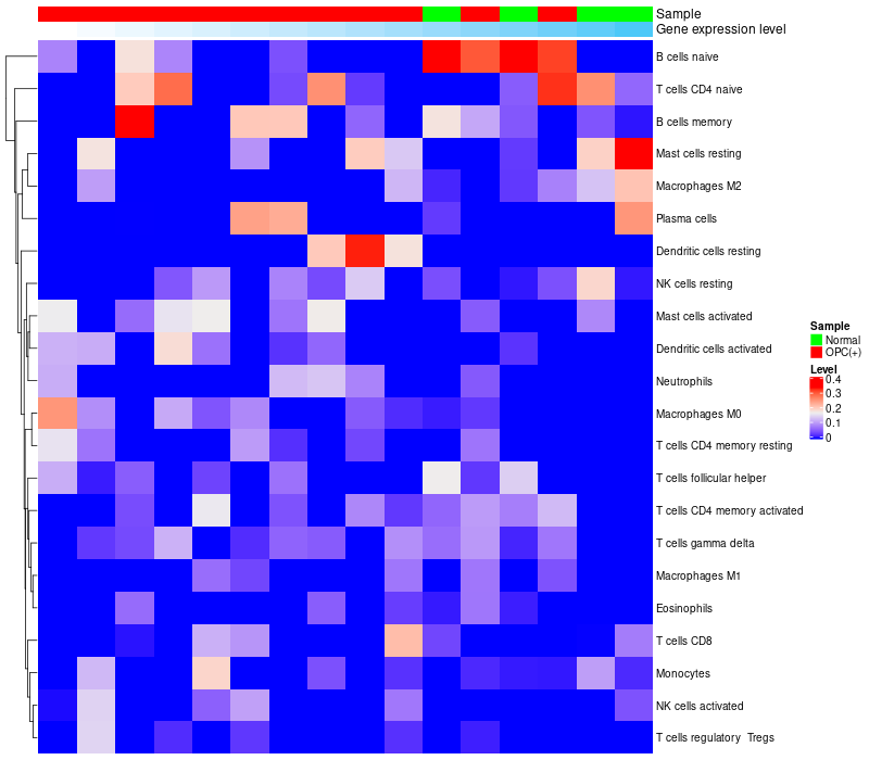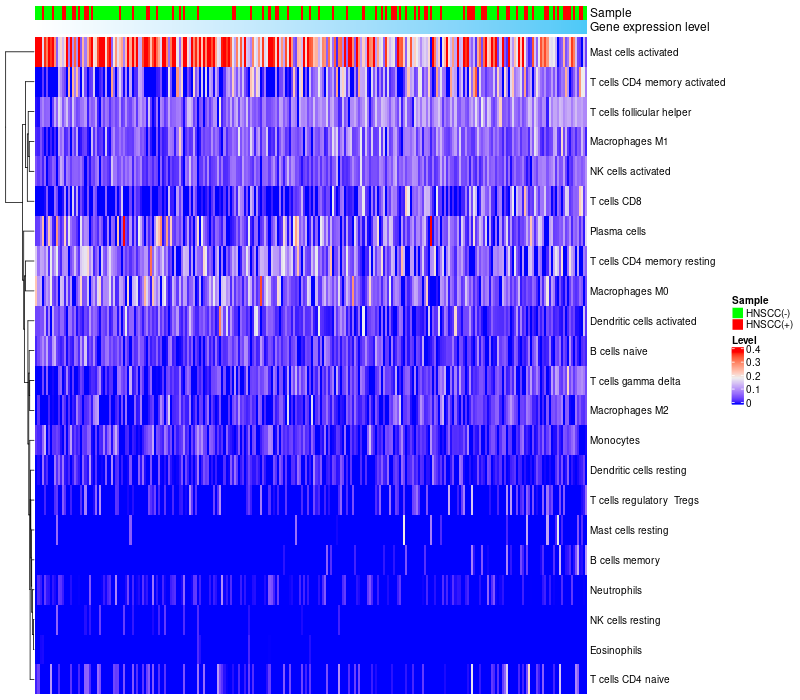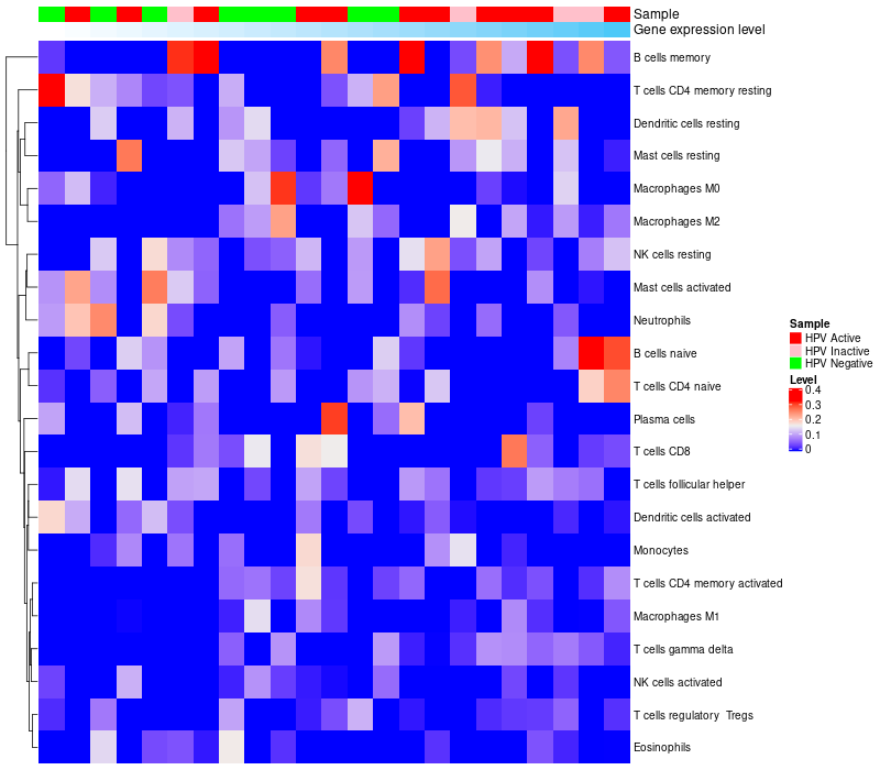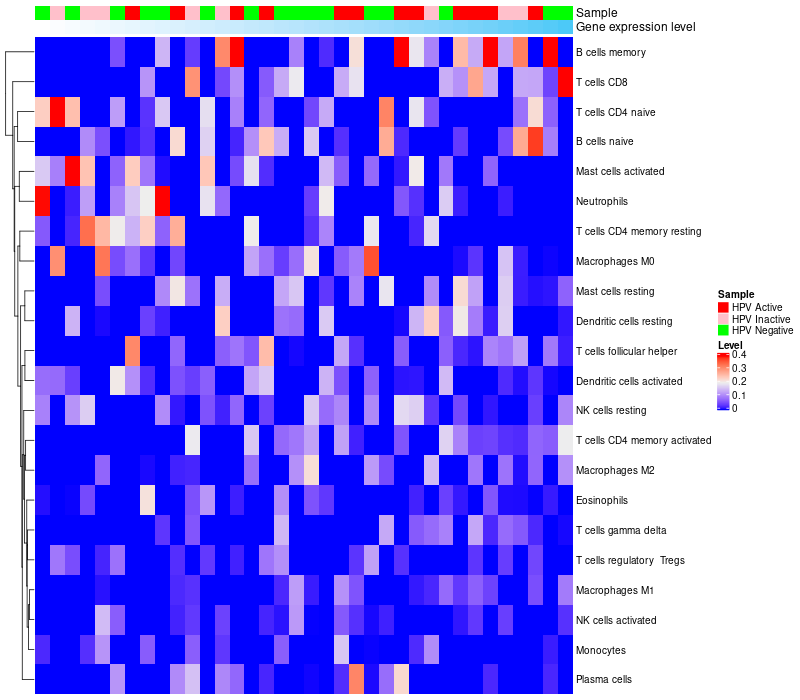 Lollipop of CD200R1 expression and immune infiltrating cell level correlation result in HPV+ samples