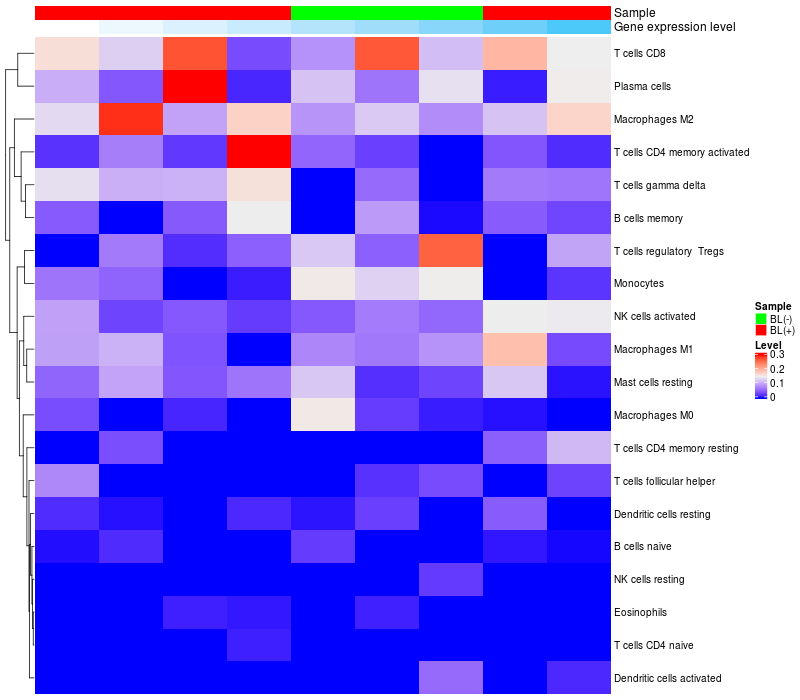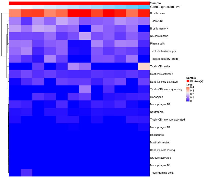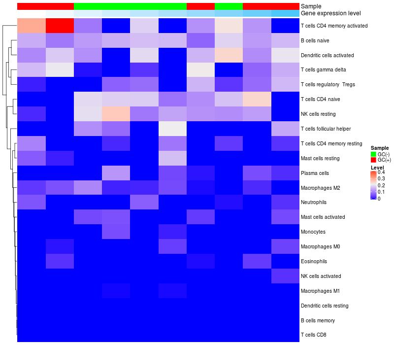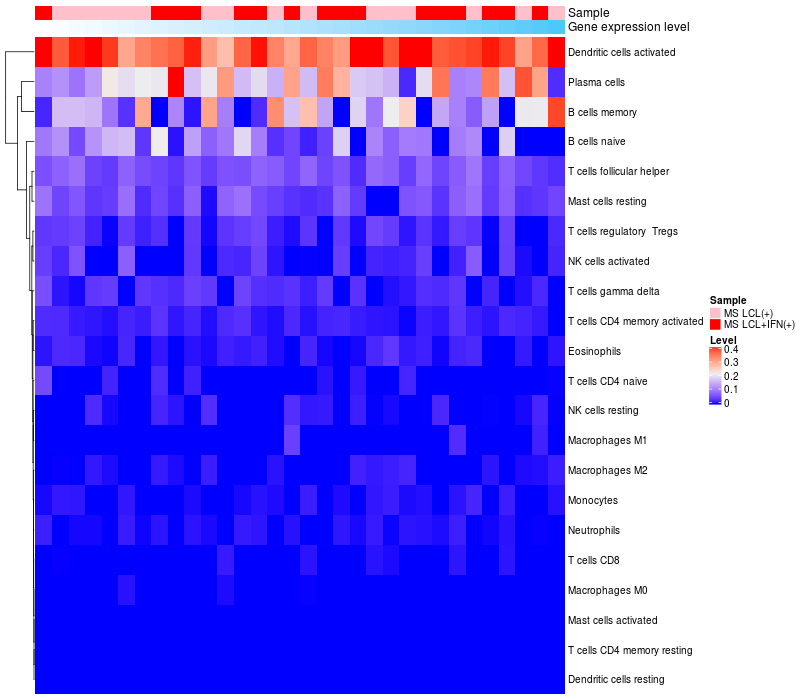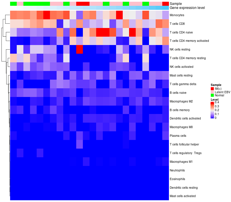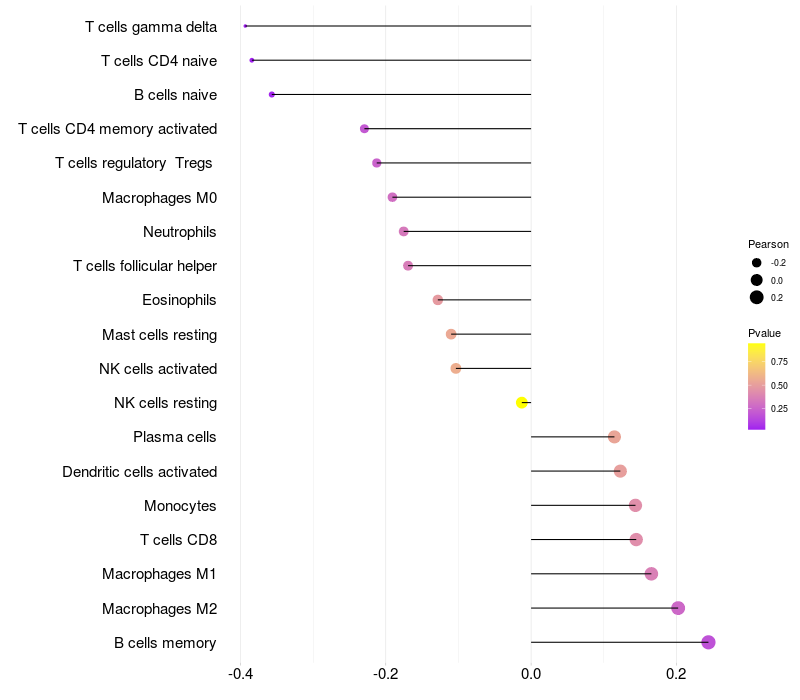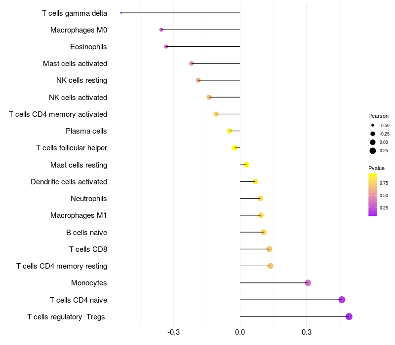 Lollipop of CD207 expression and immune infiltrating cell level correlation result in EBV+ samples