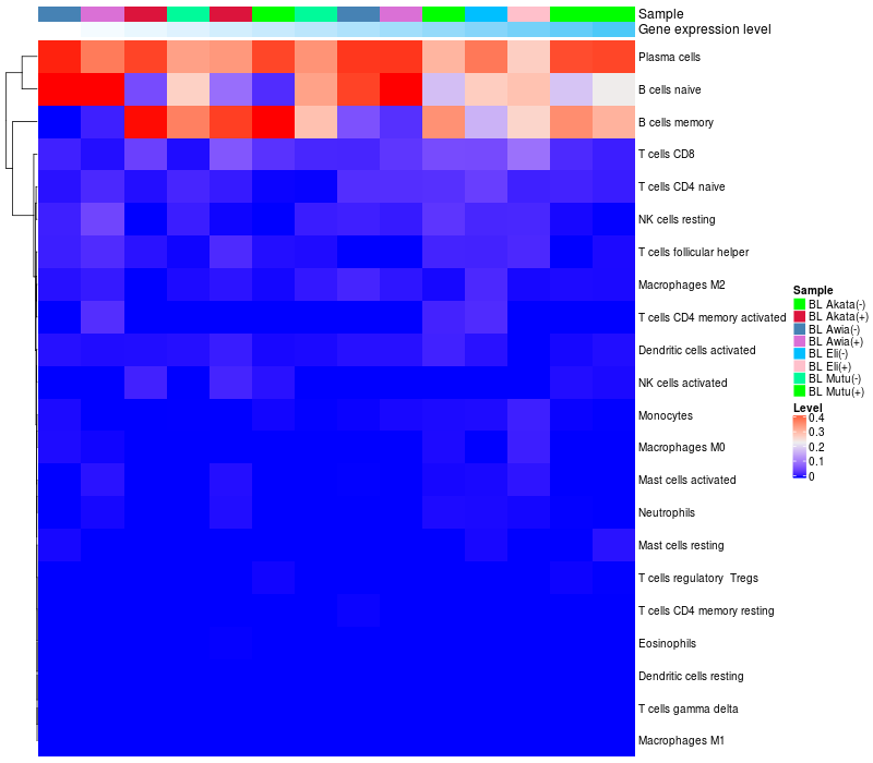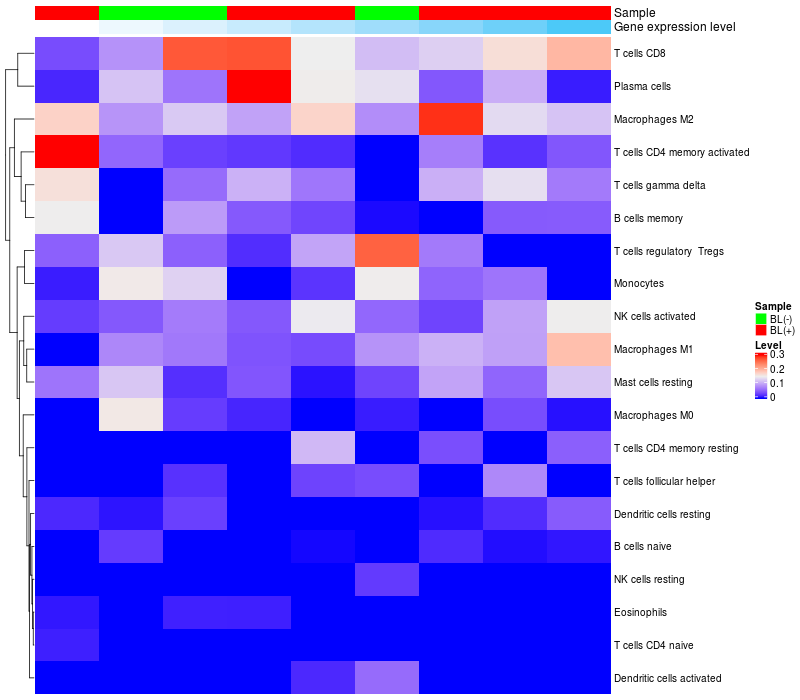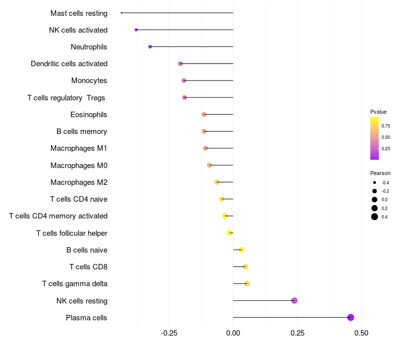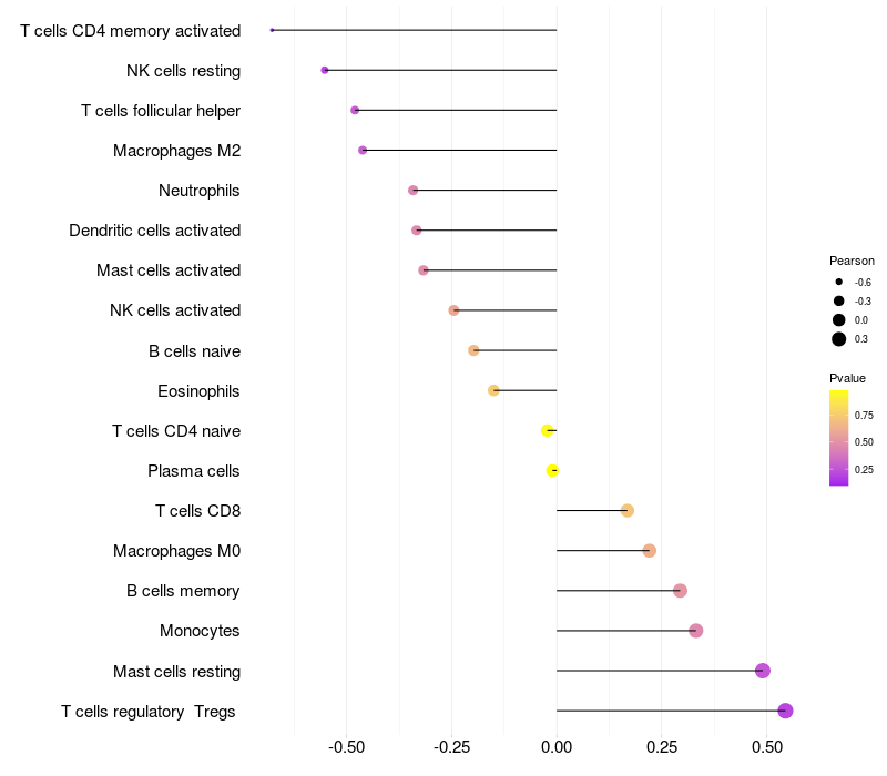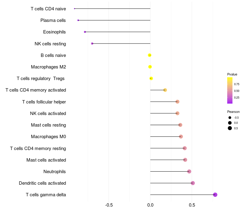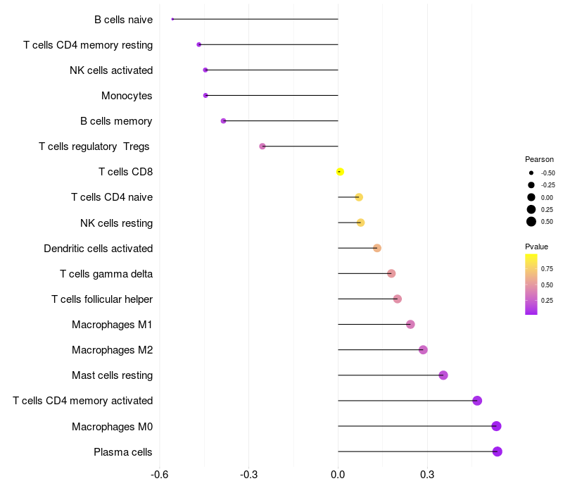 Lollipop of CD226 expression and immune infiltrating cell level correlation result in EBV+ samples