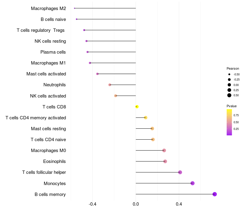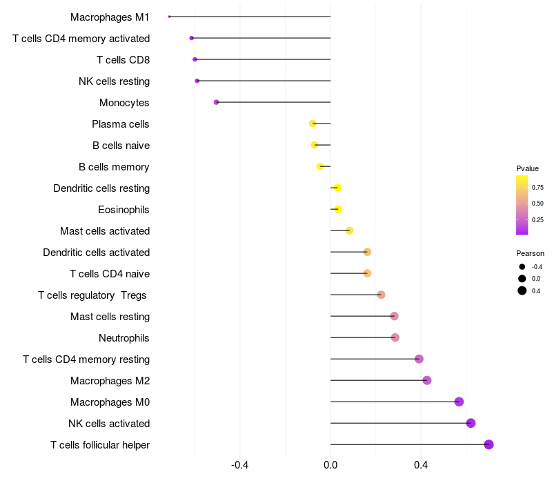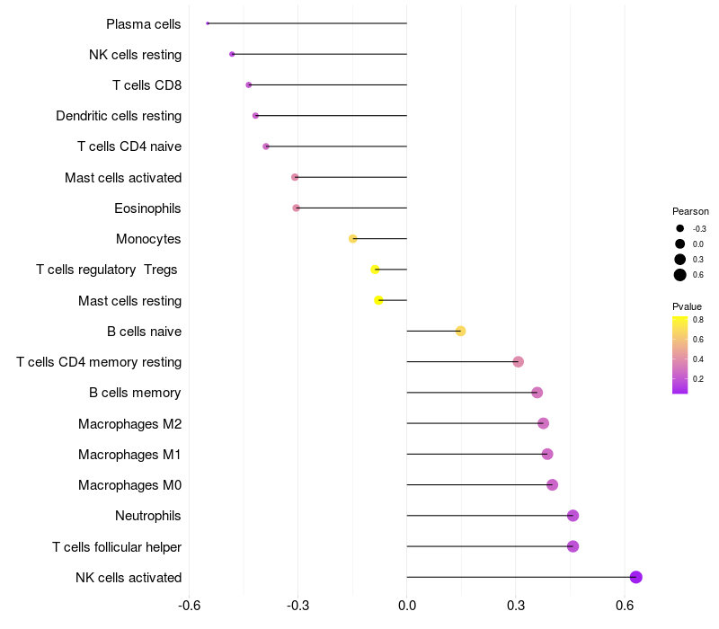 Lollipop of CD2AP expression and immune infiltrating cell level correlation result in HBV+ Liver cirrhosis samples
