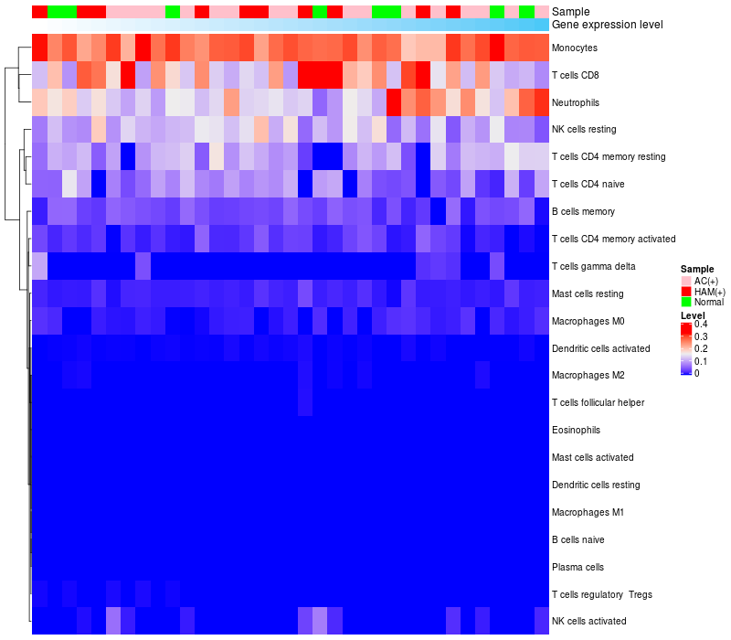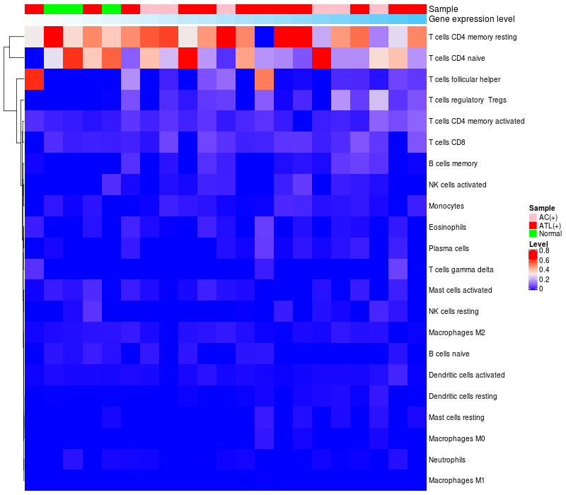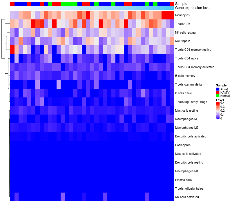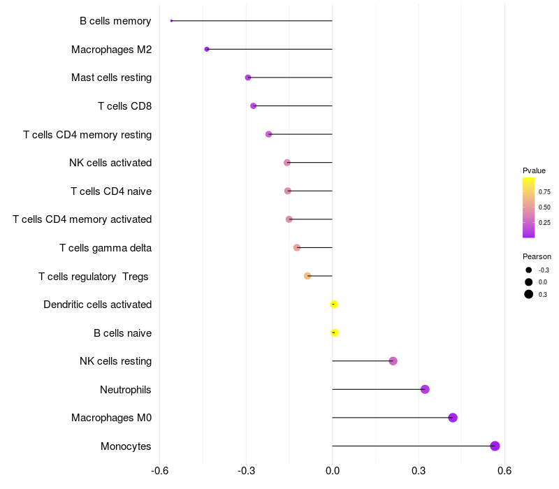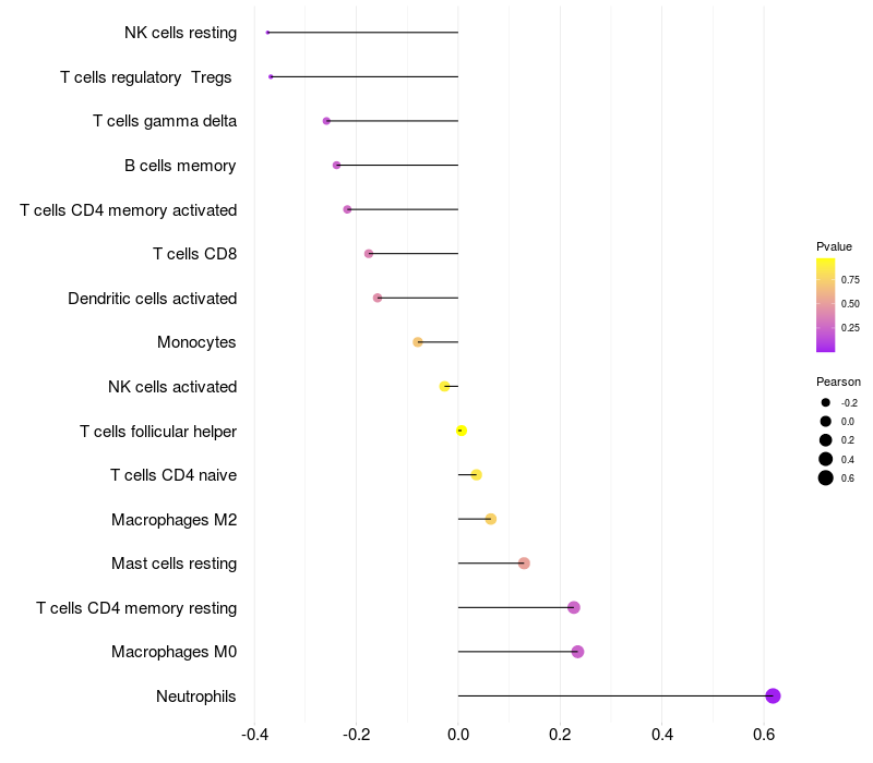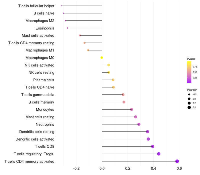 Lollipop of CD302 expression and immune infiltrating cell level correlation result in HTLV1+ samples