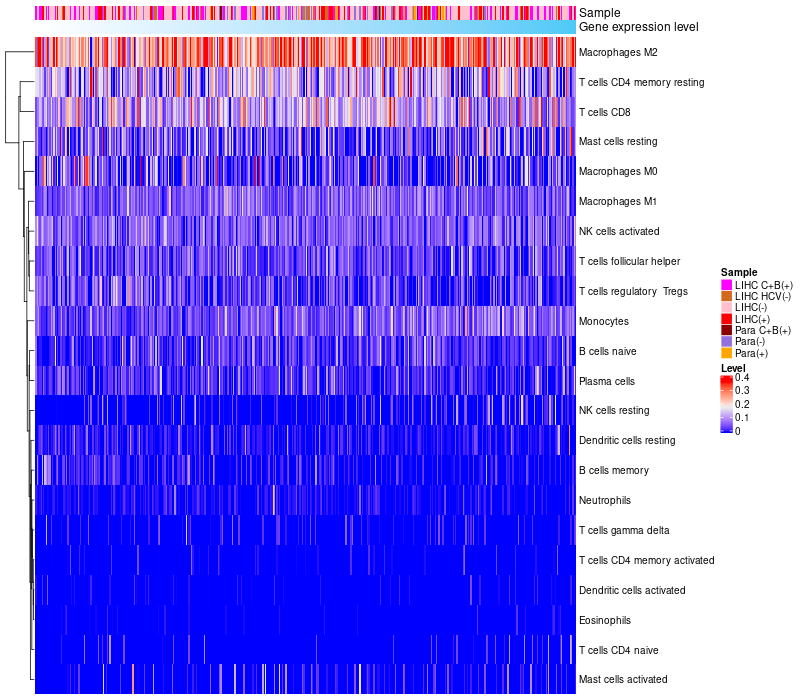 Liver hepatocellular carcinoma HCV (HBV+)(86), Liver hepatocellular carcinoma HCV (HBV-)(19), Liver hepatocellular carcinoma (HBV+)(209), Liver hepatocellular carcinoma (HBV+)(60), Paracancerous HCV (HBV+)(4), Paracancerous (HBV-)(28), Paracancerous (HBV+)(18) |