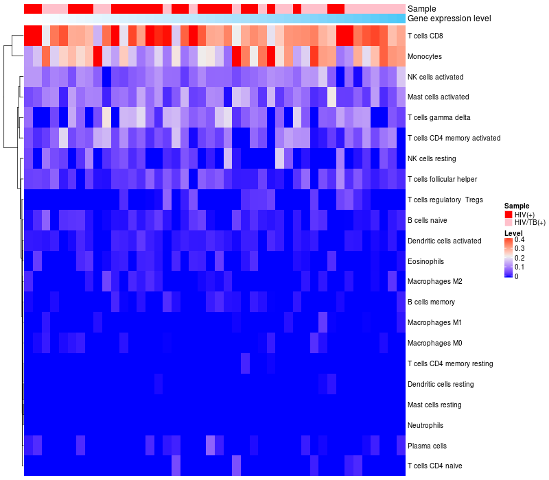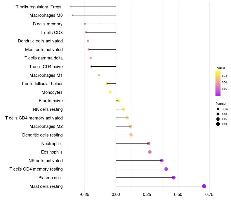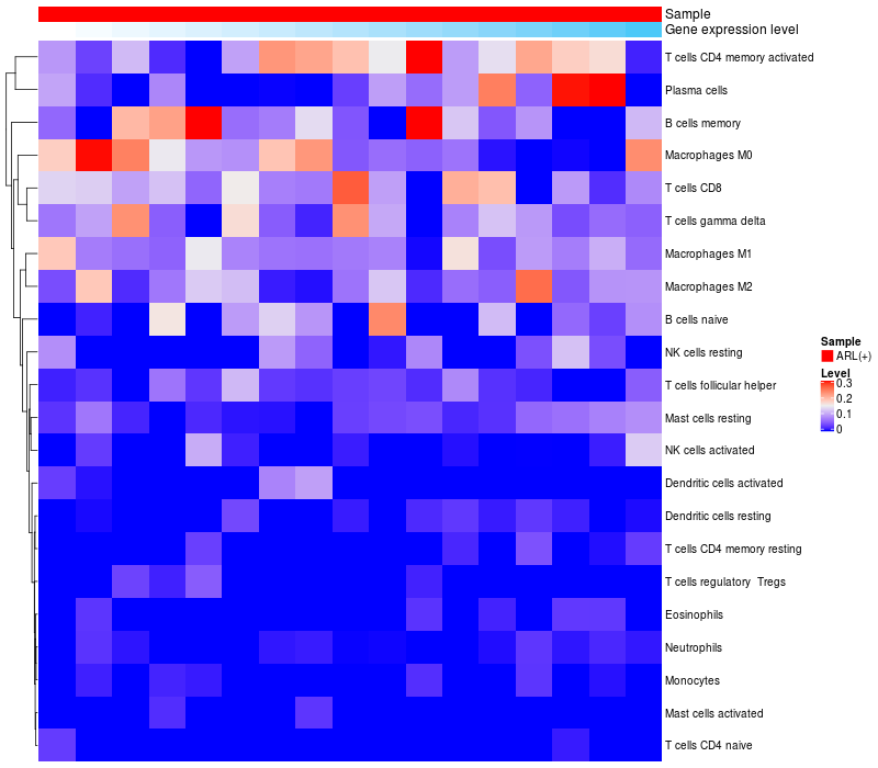 Relationship between gene expression and immune infiltrating cell level